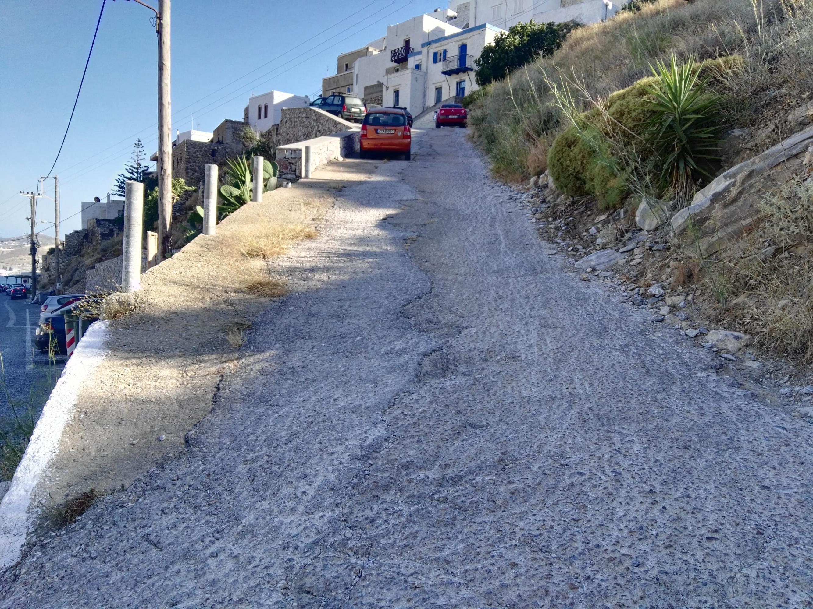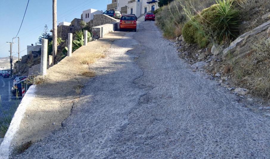 Συγκεκριμένα, πρόκειται για τον μικρό δρόμο κάθετα στην κεντρική οδό που εξυπηρετεί τον μεσαιωνικό οικισμό μετά από το πρώτο τέρμα και στο ύψος της επιχείρησης Ραχαμός, ο οποίος φέρει σημαντικές φθορές.
