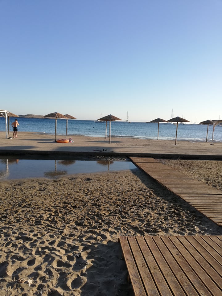 Πλέον, οι λουόμενοι μπορούν να παραμένουν με ασφάλεια επάνω στην πλατφόρμα αλλά και να απολαμβάνουν τον ήλιο, αφού τοποθετήθηκαν οκτώ ομπρέλες, για την προμήθεια των οποίων φρόντισε το Λιμενικό Ταμείο Σύρου, ενώ έχει τοποθετηθεί και ειδικός διάδρομος πρόσβασης σε αυτής.