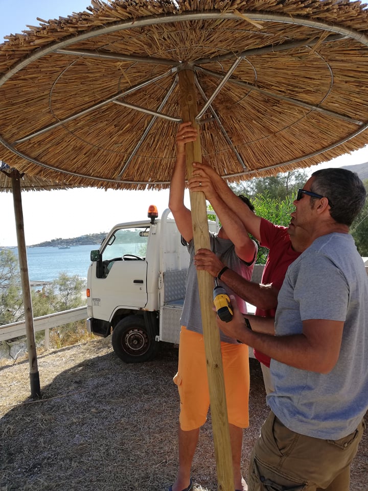 Ολοκληρώθηκαν οι εργασίες τοποθέτησης ομπρελών στην πλατφόρμα της παραλίας του Φοίνικα, προκειμένου οι λουόμενοι να απολαμβάνουν με άνεση και προστασία την παραμονή τους στη θάλασσα και την πλαζ κατά την καλοκαιρινή περίοδο.