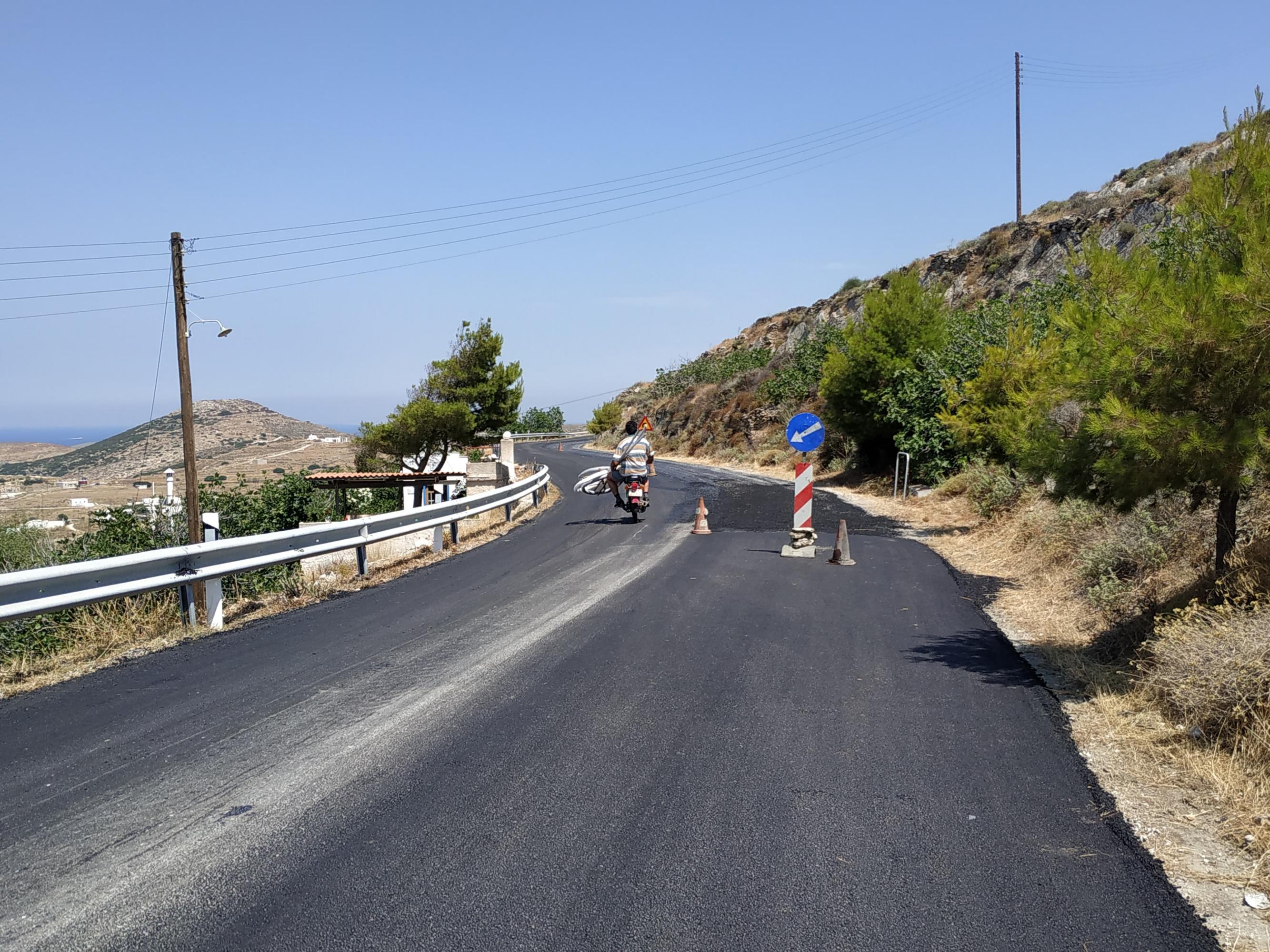 Πρόκειται για έναν δρόμο που αν κι εξυπηρετεί αρκετούς πολίτες, μέχρι σήμερα δεν είχε δεχθεί σημαντικές παρεμβάσεις, παρά μόνον μπαλώματα. Ωστόσο, ήδη τις τελευταίες τρεις ημέρες – όπως ανακοίνωσε και η Τεχνική Υπηρεσία της Περιφέρειας Ν. Αιγαίου – βρίσκονται σε εξέλιξη οι προγραμματισμένες εργασίες, για την ταχύτερη δυνατή ομαλοποίηση του οδοστρώματος.