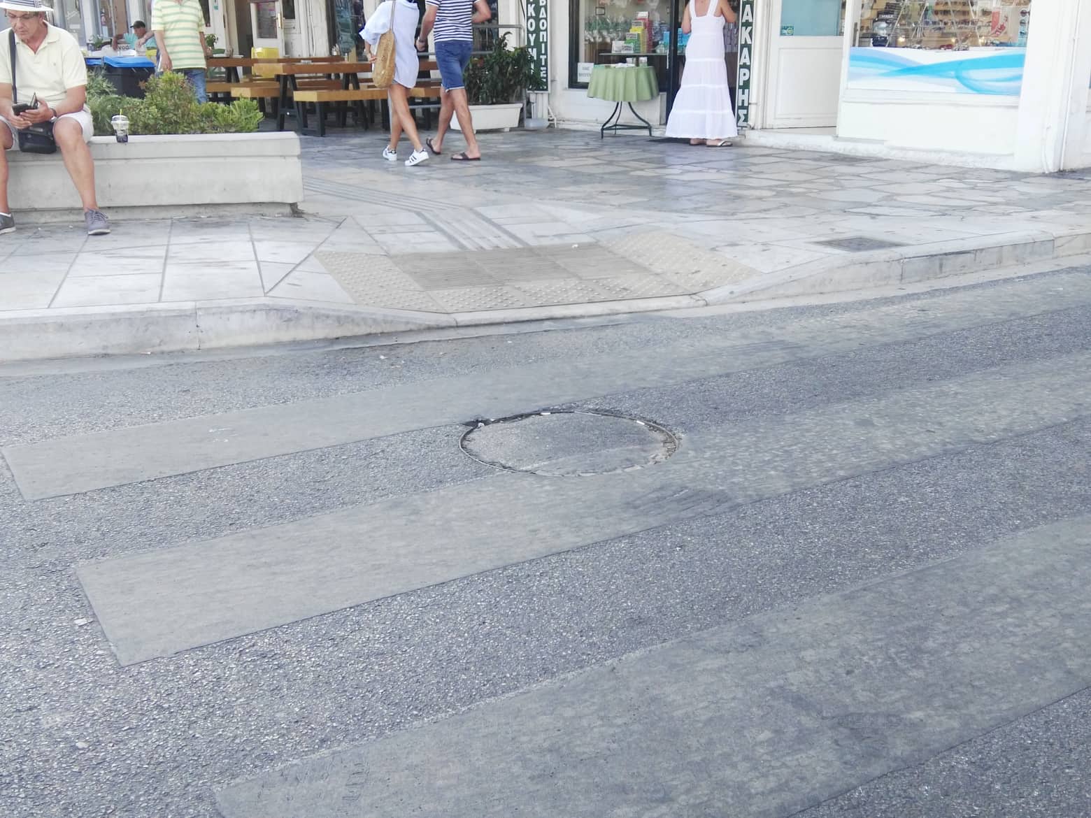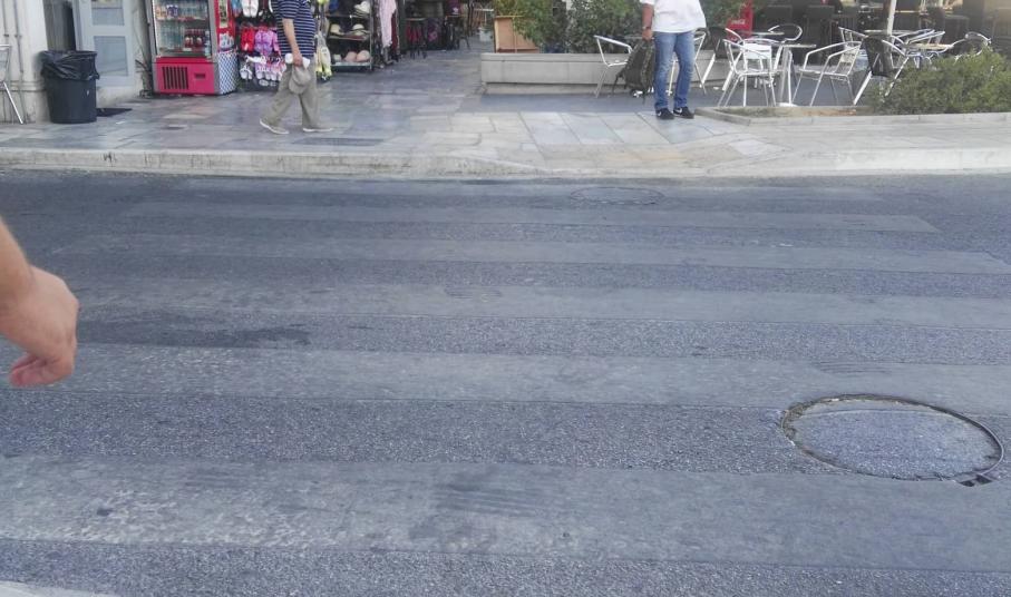 Πόλη χωρίς διαβάσεις πεζών μοιάζει η Ερμούπολη την τρέχουσα θερινή περίοδο και συγκεκριμένα η παραλιακή ζώνη της, αφού οι ειδικές προκατασκευσμένες ταινίες που τοποθετήθηκαν έχουν αποκτήσει χρώμα ίδιο με την άσφαλτο.