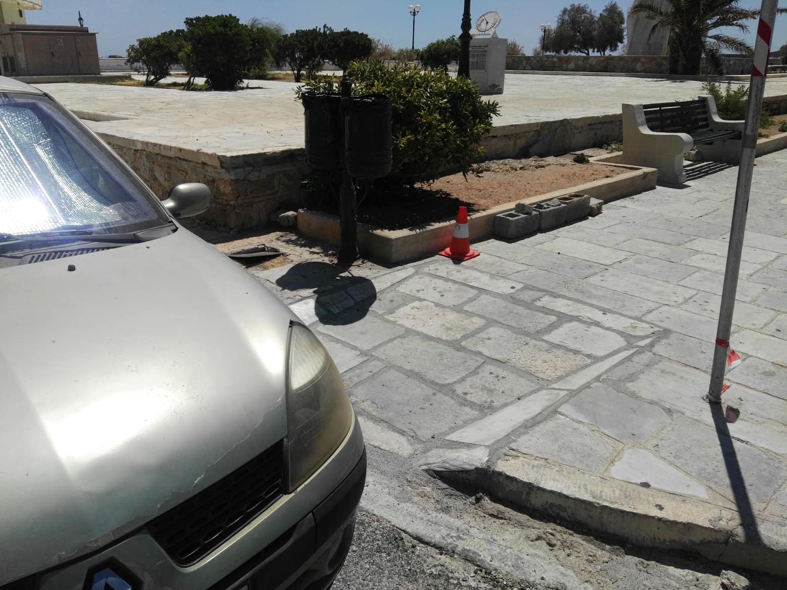 Χαρακτηριστικό παράδειγμα, το σημείο πλησίον του μνημείο Εμπορικής Ναυτιλίας, στο οποίο στάθμευσε όχημα, αποκλείοντας την είσοδο της ράμπας.