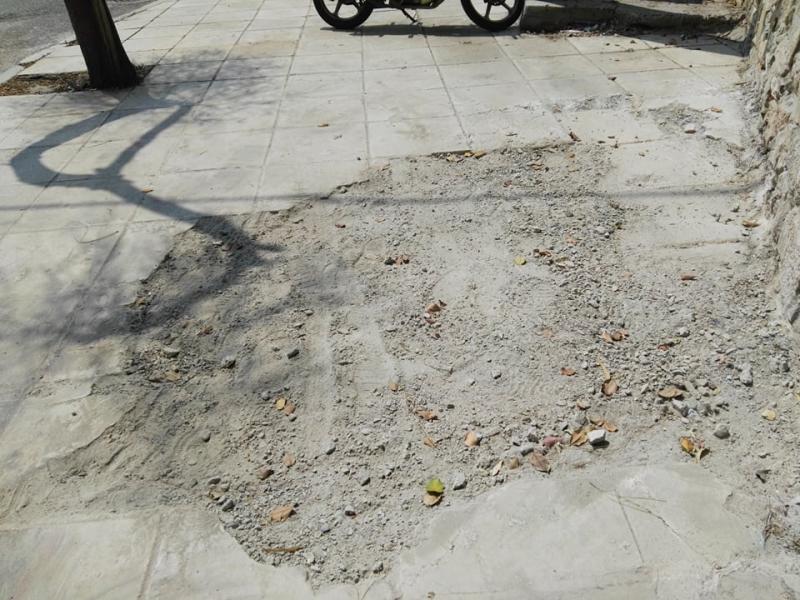 Μοναδική εκκρεμότητα παραμένει η αποκατάσταση του τμήματος του πεζοδρομίου από το οποίο “ξηλώθηκε” η βάση του, για την ασφαλή μετακίνηση των πεζών.