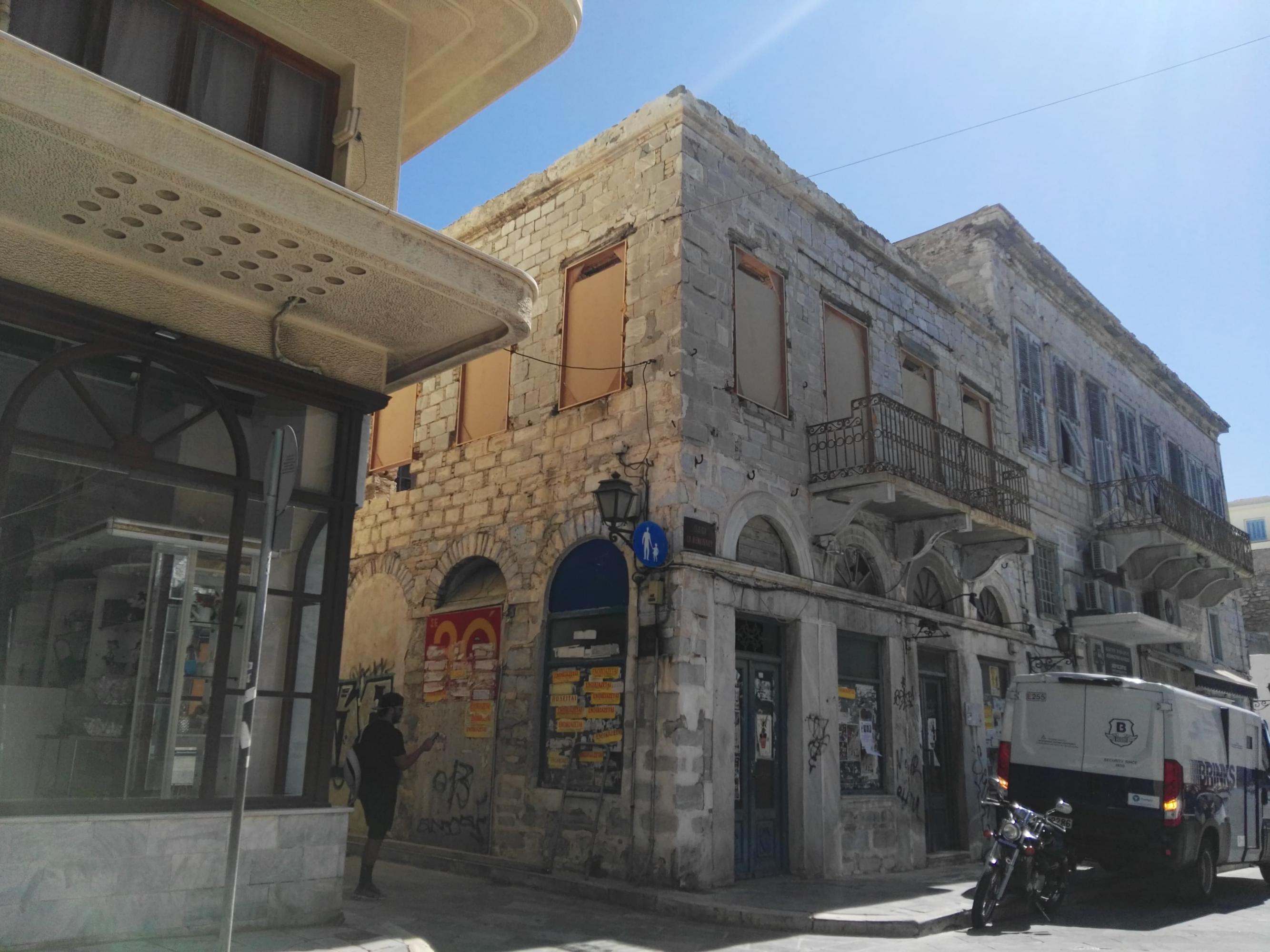 Σε νέες παρεμβάσεις επί εγκαταλελειμμένου κτιρίου στη συμβολή των οδών Ελ. Βενιζέλου και Κωτσοβίλη προχώρησε το Τμήμα Μικρών Έργων του Δήμου Σύρου – Ερμούπολης, προκειμένου να αποφευχθεί η πρόκληση ατυχήματος από ενδεχόμενη πτώση μέρους των επιφανειών του.