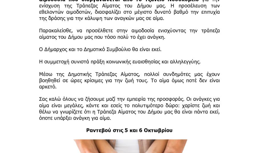 Στις 5 και 6 Οκτωβρίου πραγματοποιείται η αιμοδοσία στη Μήλο. Πατήστε επάνω στη φωτογραφία για περισσότερες πληροφορίες.