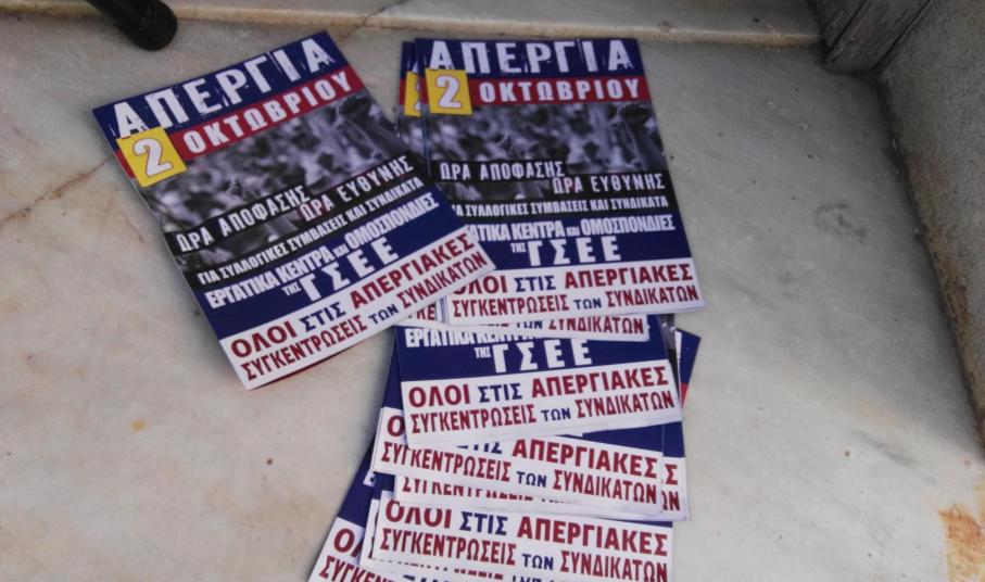 Παρά το σοβαρό περιεχόμενο των ανακοινώσεών τους λίγα 24ωρα πριν την πανελλαδική απεργία της 2ας Οκτωβρίου, αναφορικά με το πολυνομοσχέδιο της κυβέρνησης, το οποίο μάλιστα χαρακτήρισαν “σκούπα” για τους μισθούς των εργαζομένων και τις συνδικαλιστικές ελευθερίες, οι ίδιοι δεν κατάφεραν να συγκεντρώσουν κόσμο στα σημεία συνάντησής τους.