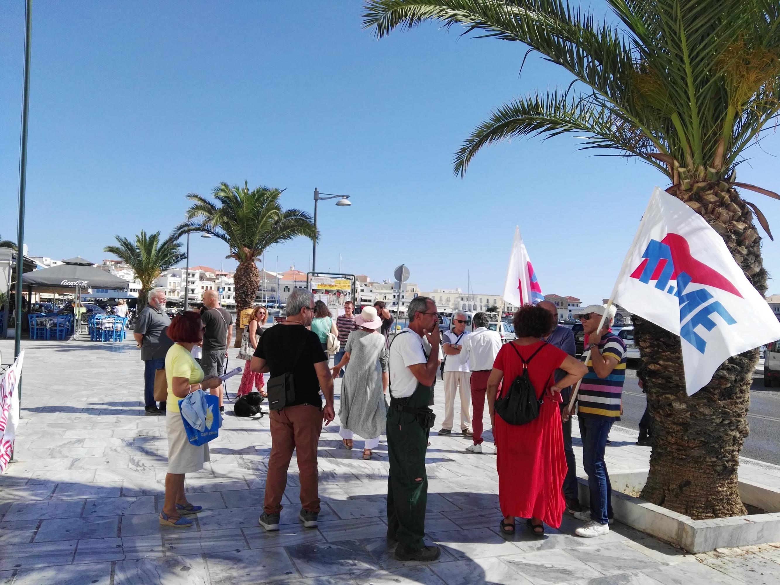 Το αποτέλεσμα αυτών των συγκεντρώσεων τόσο στο Εργατικό Κέντρο Κυκλάδων, όσο και στην Αποκεντρωμένη Διοίκηση Αιγαίου στην Ερμούπολη ήταν η καταγραφή της απουσίας από τα λιγοστά μέλη των συνδικαλιστικών οργανώσεων, γεγονός που προκάλεσε και τη μη πραγματοποίηση πορείας διαμαρτυρίας.