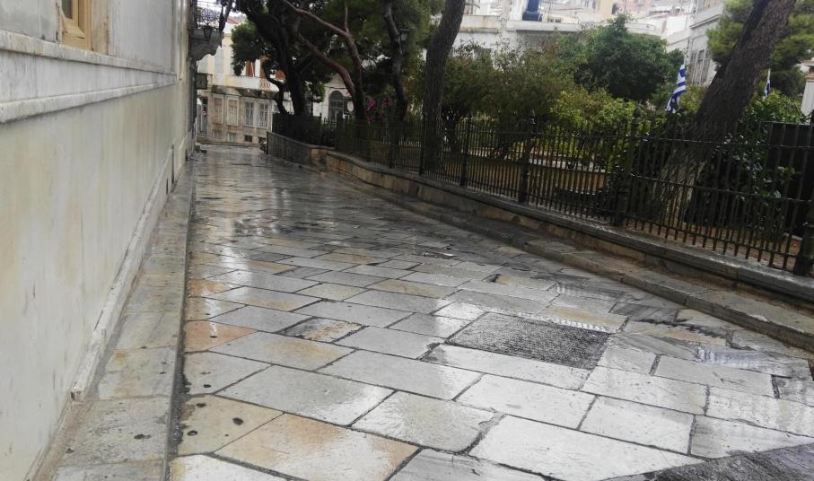 Με φόντο τα παραπάνω, το Συμβούλιο της Κοινότητας Ερμούπολης έχει προτείνει την ανάπτυξη εργασιών χτενίσματος των μαρμάρινων πλακών για την ασφάλεια πεζών και οδηγών, αίτημα που χρήσιμο είναι να ικανοποιηθεί άμεσα δεδομένων των καιρικών συνθηκών.