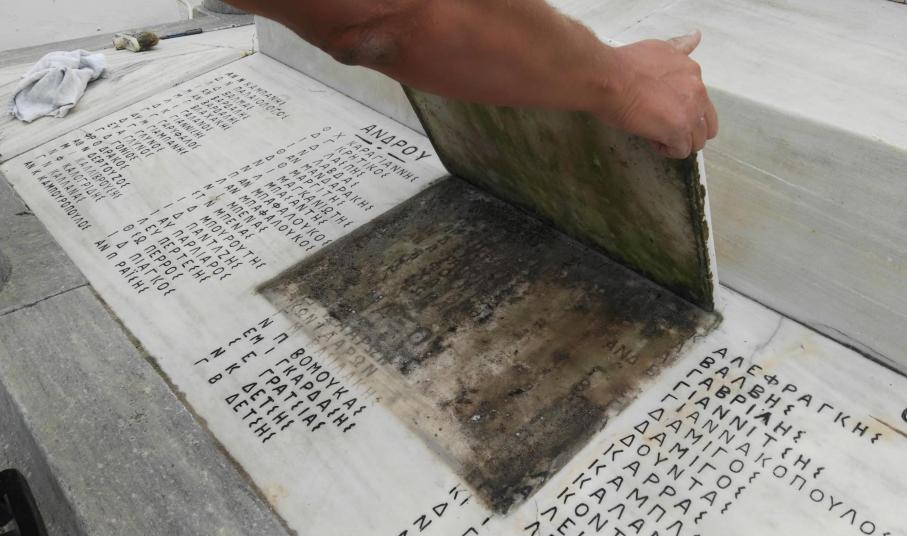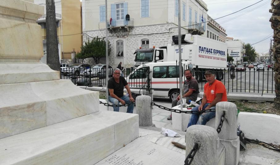 Στην αποκάλυψη... του συνόλου των ονομάτων και των επιγραφών επί των επιφανειών του μνημείου των πεσόντων στην πλατεία Ηρώων προχωρά ο Δήμος Σύρου – Ερμούπολης, αναδεικνύοντας πλήρως τον εν λόγω χώρο, ο οποίος κατά την τελευταία θητεία δεν είχε λάβει καμία φροντίδα.