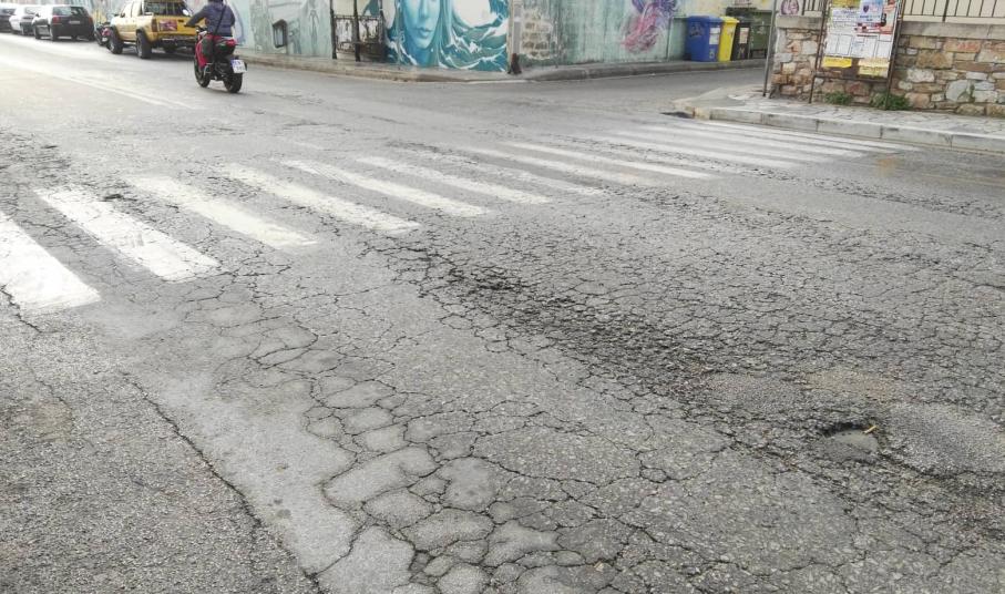 Επί χρόνια καμία παρέμβαση αποκατάστασης του δρόμου στο ύψος του ΙΚΑ στην Ερμούπολη