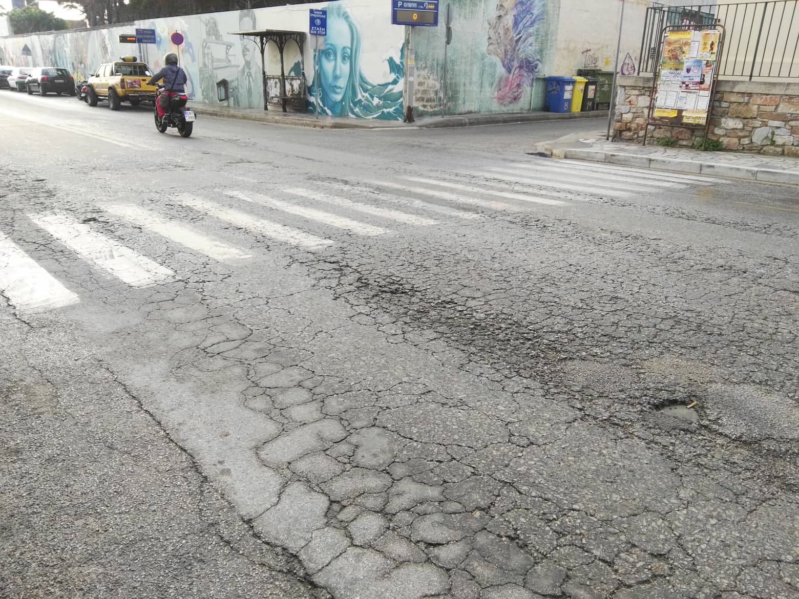 Μάλιστα, η ανυπαρξία σχετικών εργασιών για την ομαλοποίηση της επιφάνειάς του, μπορεί να προκαλέσει και πτώση πεζού, όταν διέρχεται από τη σχεδόν αόρατη... διάβαση πεζών.