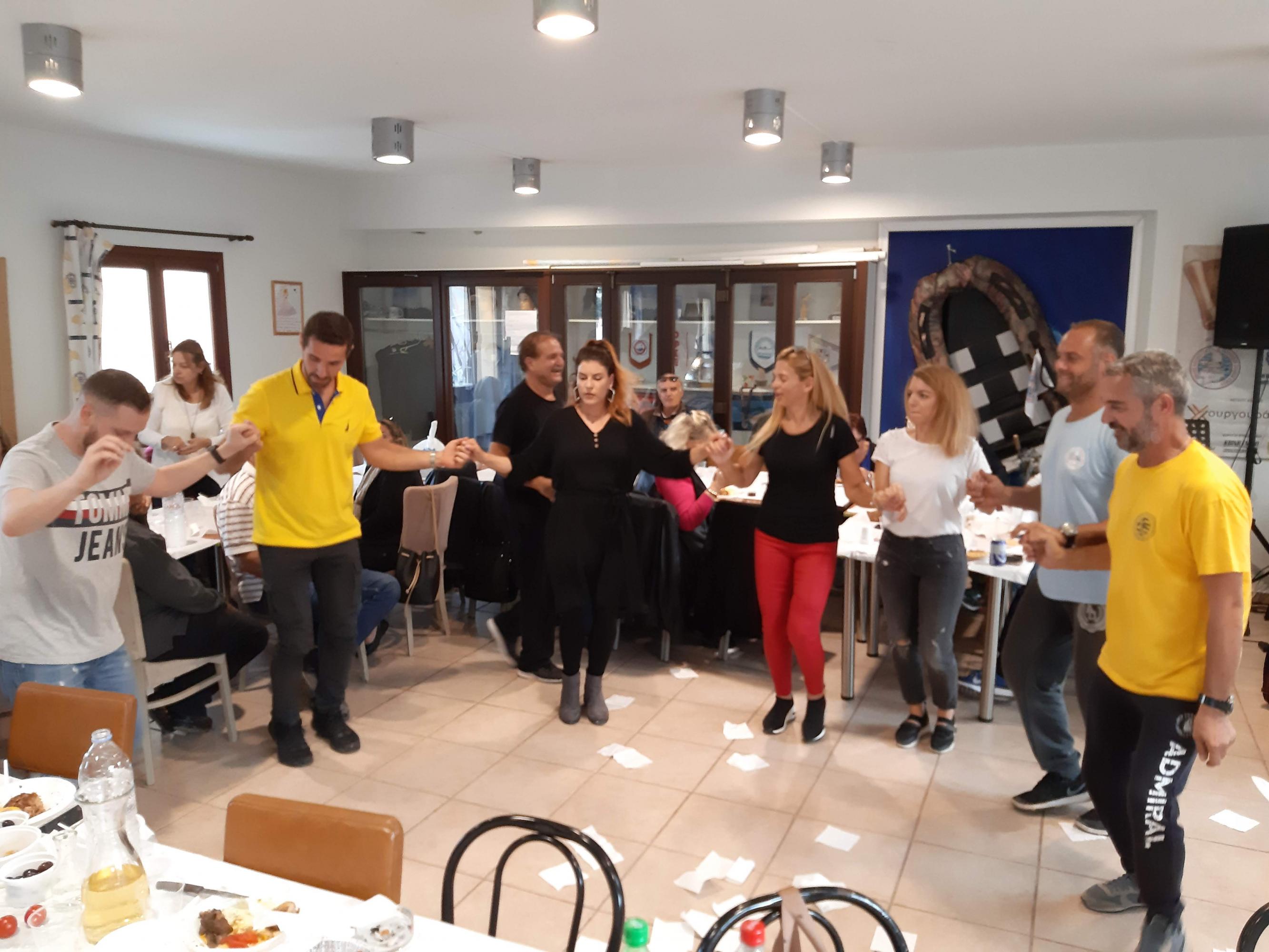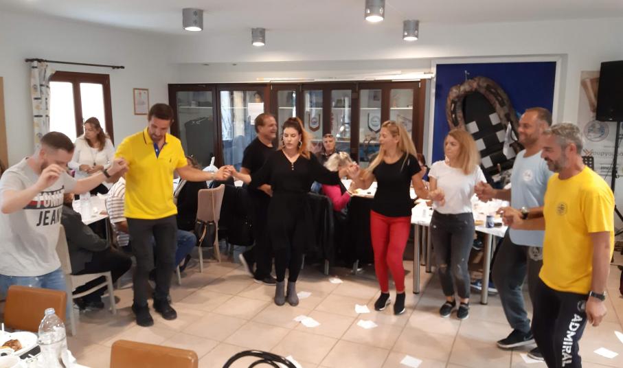 Εν τω μεταξύ στον εντευκτήριο του Ομίλου, ο dj που είχε προσκληθεί , ξεκίνησε τις μουσικές επιλογές του και σύντομα οδήγησε τους παρευρισκόμενους στην πίστα. Οι χορευτικές επιδόσεις όλων κράτησαν μέχρι αργά το βράδυ με αμείωτο κέφι. Θερμές ευχαριστίες απηύθυναν οι παρευρισκόμενοι τόσο του ΟΦΣΕ όσο και του ΙΑΣΩΝΑ για την υποδοχή των μελών τους και με τη σειρά της η πρόεδρος του ΙΑΣΩΝΑ κ.Κρίστυ Δούνια προσκάλεσε τα μέλη του ΟΦΤΣΣ , να συμμετέχουν στο πάρτι του, με την ευκαιρία της στεριανής συνάντησης των Ομίλων, στις 29-30 Νοεμβρίου.