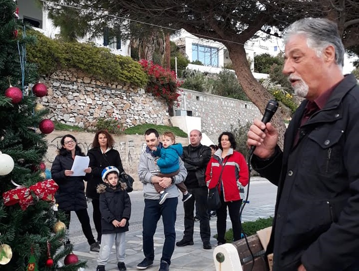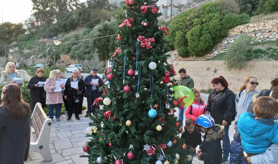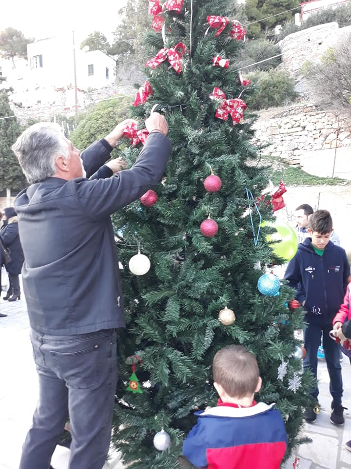 Εξαιρετική στιγμή του ίδιου απογεύματος, η φωταγώγηση του μικρού χριστουγεννιάτικου δέντρου, το οποίο φέρει την “υπογραφή” μικρών και μεγάλων.