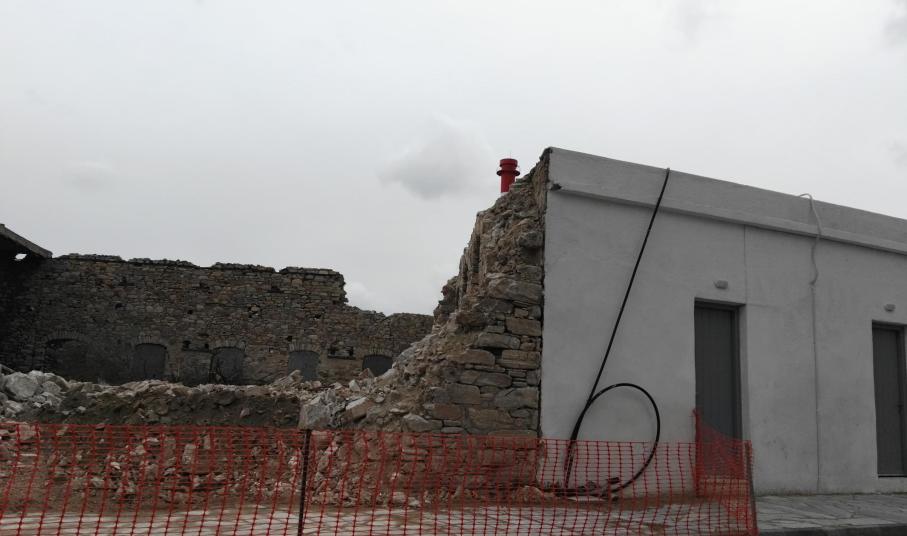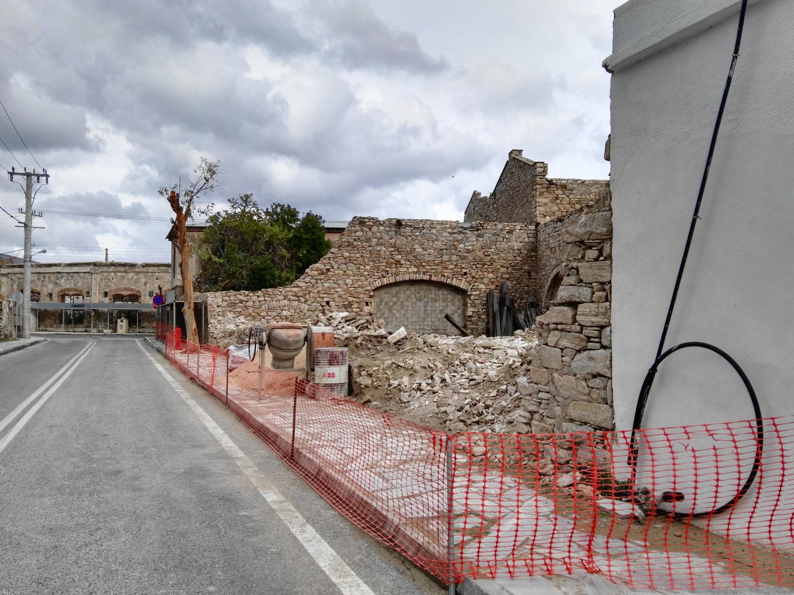 Όπως είχε γνωστοποιηθεί, μετά από τα γεγονότα κατάρρευσης του εξωτερικού τοίχου την περασμένη εβδομάδα, ο σημερινός ιδιοκτήτης του ακινήτου, ο ΟΑΕΔ κλήθηκε να δρομολογήσει άμεσα τις εργασίες που θα απομάκρυναν και τα εναπομείναντα τμήματα του ερειπίου που γειτνιάζει με το γήπεδο ποδοσφαίρου Ερμούπολης, προκειμένου να μην κινδυνεύσει κάποιος αθλητής και δημότης.