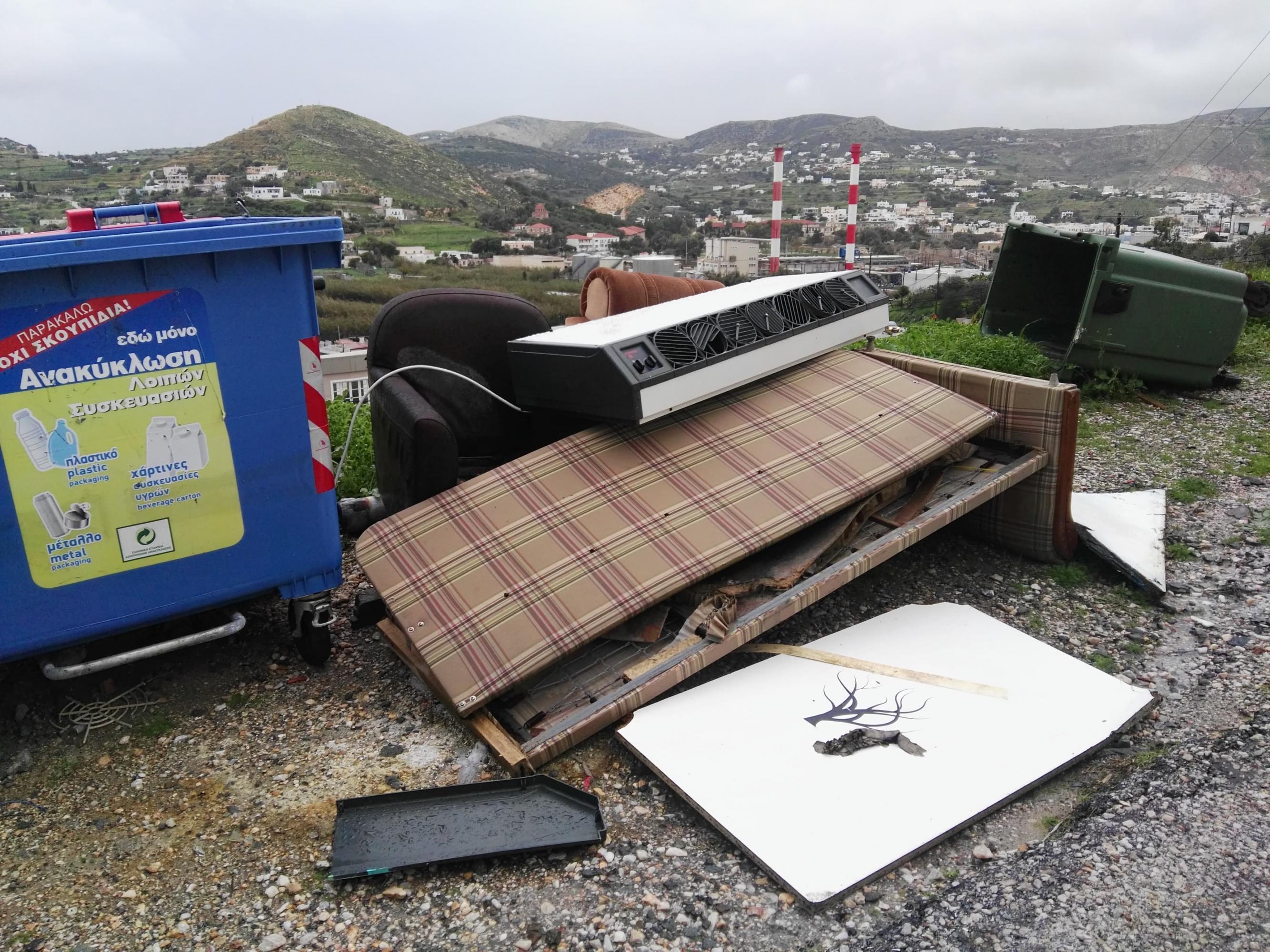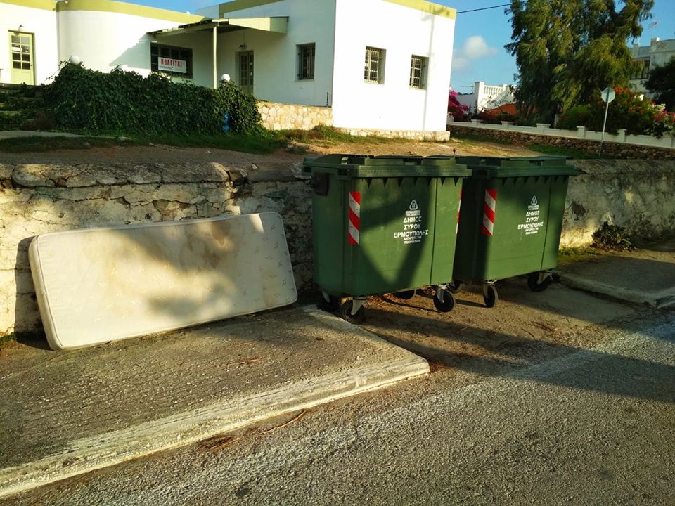 Εικόνες ντροπής που προδίδουν αδιαφορία για το περιβάλλον, αλλά και γενικότερη ασυνειδησία από την πλευρά ορισμένων πολιτών, αποτυπώνουν οι φωτογραφίες που ακολουθούν και δείχνουν πως συνεχίζεται η ανεξέλεγκτη απόρριψη ογκωδών αντικειμένων δίπλα από κάδους σε αρκετές περιοχές της Σύρου.