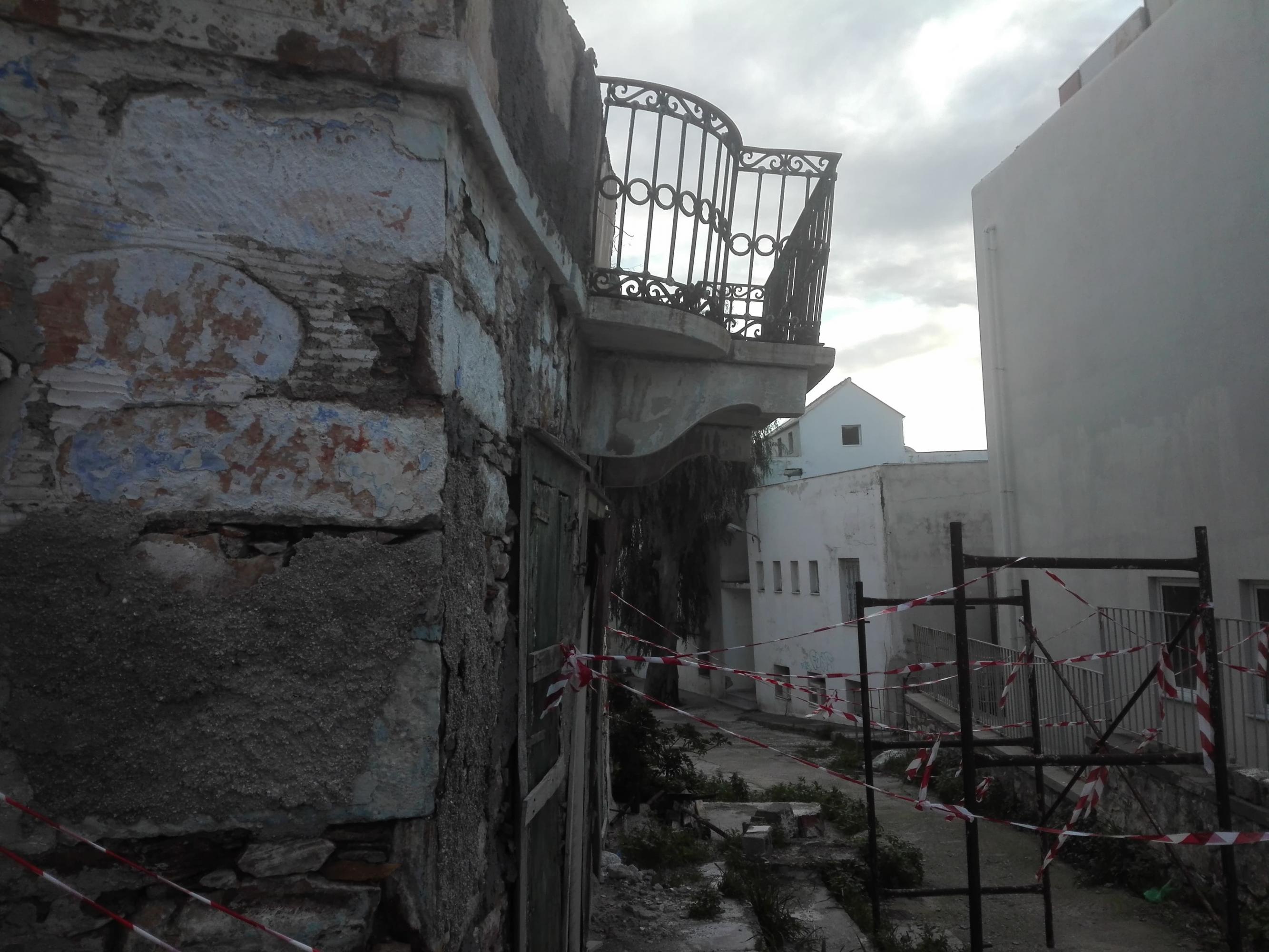 Συγκεκριμένα, πρόκειται για μία παλαιά κατοικία πλησίον της συνοικίας της Νεάπολης, από την οποία είχαν απομείνει μόνον οι τοίχοι της και ένα μπαλκόνι, το οποίο αποτελεί σήμερα παρελθόν. Η πτώση του, εξωτερικά του ερειπίου, καθώς και ο κίνδυνος κατάρρευσης κι άλλων τμημάτων της πρώην κατοικίας, θορύβησαν τους περίοικους, καθώς από τη μικρή οδό που βρίσκεται το κτίριο, περνά καθημερινά αρκετός κόσμος.