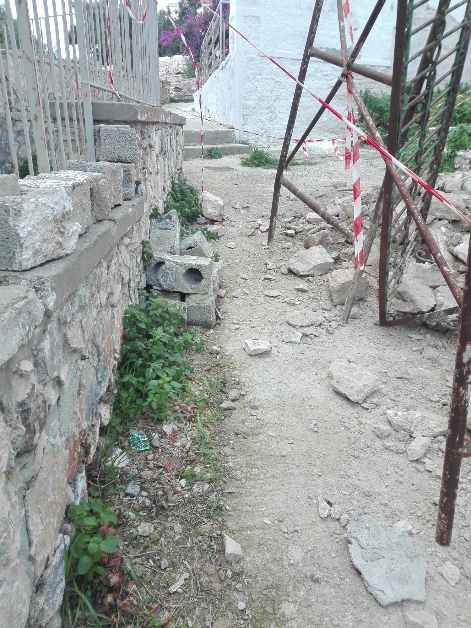 Η τοποθέτηση μίας απαγορευτικής κορδέλας στο σημείο, μπορεί να προειδοποιεί τους πεζούς για τον κίνδυνο που παραμένει στο ύψος ακριβώς του τμήματος που έπεσε το μπαλκόνι, ωστόσο, η διέλευση πολιτών από τον μικρό δρόμο, όπως και από την οδό Φαίδωνος Κουκουλέ, απαιτεί ιδιαιτέρως αυξημένα αντανακλαστικά.