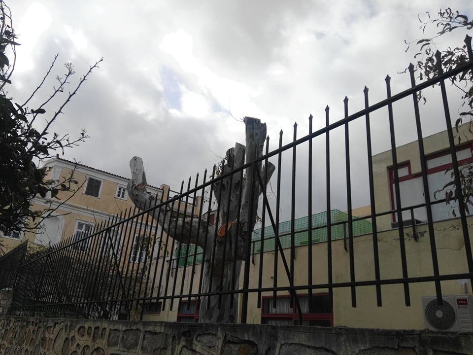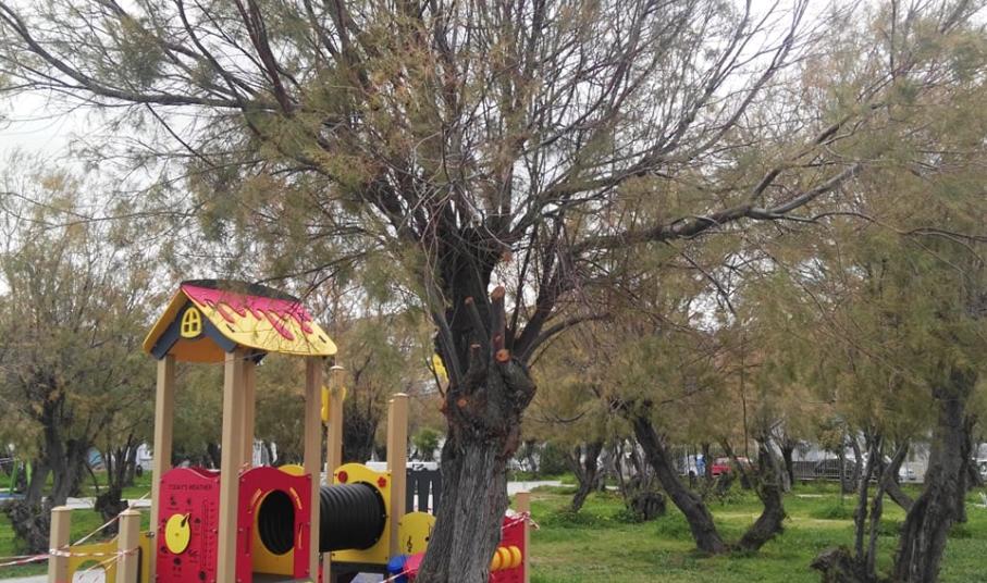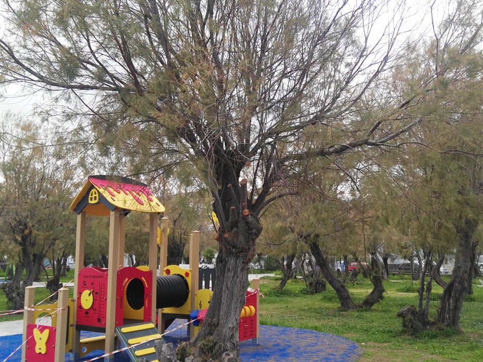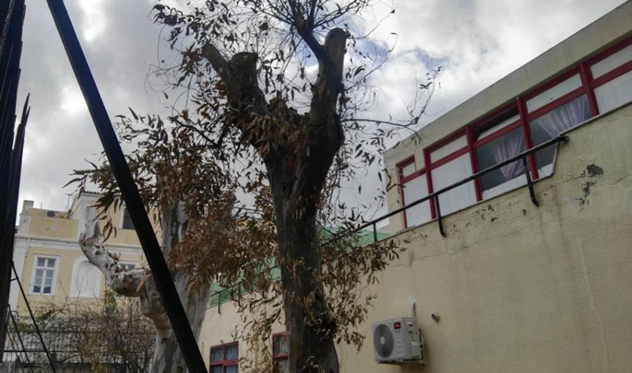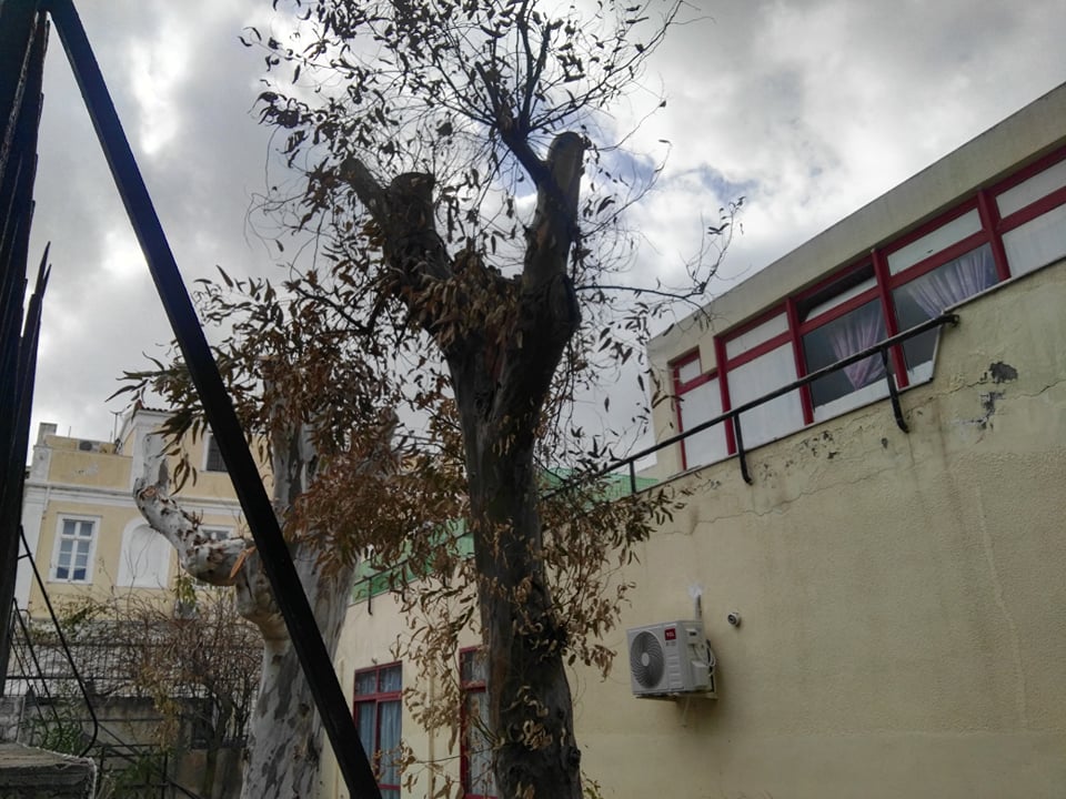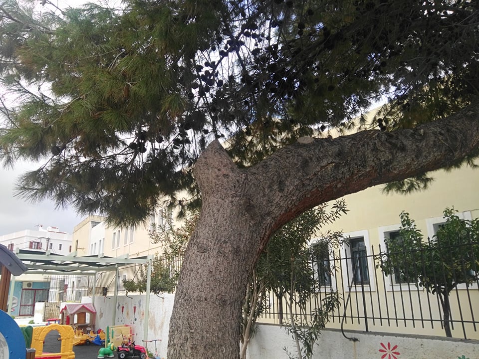 Επιπλέον, διακρίνονται αντίστοιχες εργασίες στην αυλή του παιδικού σταθμού και του νηπιαγωγείου της οδού Κ. Μαρούλη, πλησίον του 4ου Δημοτικού Σχολείου Ερμούπολης, προκειμένου να αποφευχθεί ατύχημα από πτώση κλαδιού. Υπενθυμίζεται ότι τα συγκεκριμένα δέντρα (πεύκα και ευκάλυπτος) είχαν “γιγαντωθεί” σημαντικά.