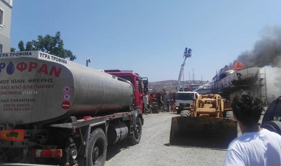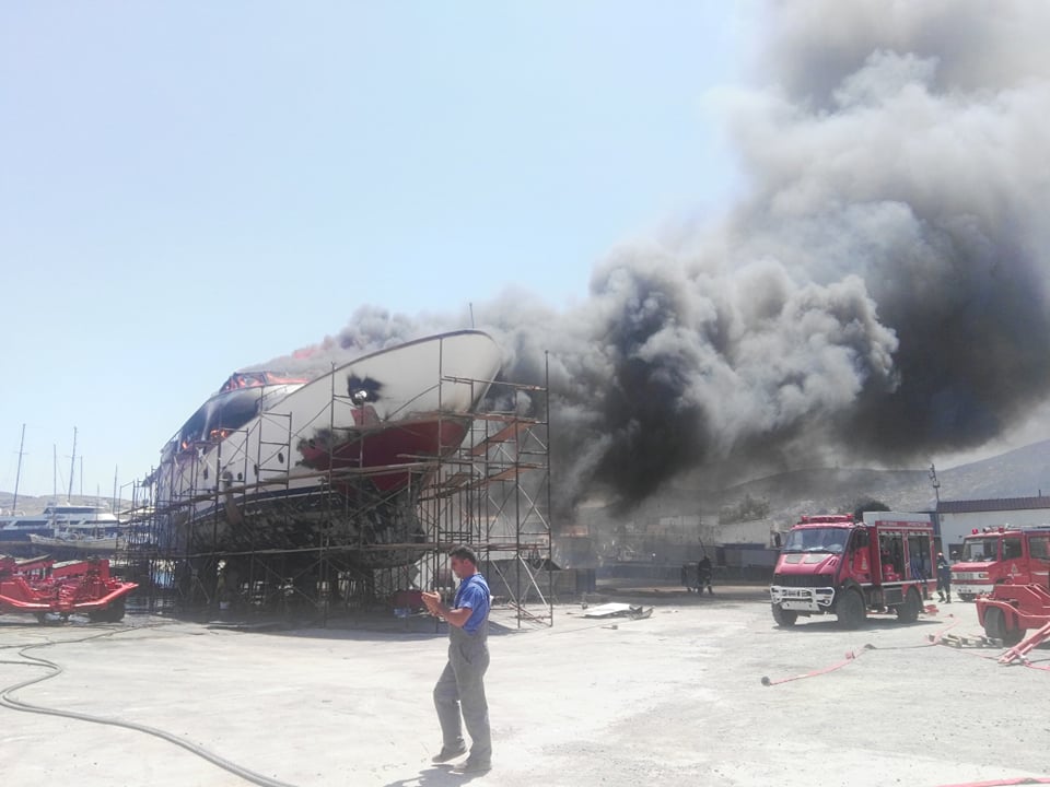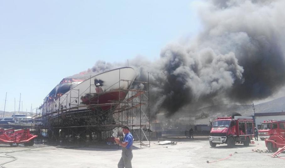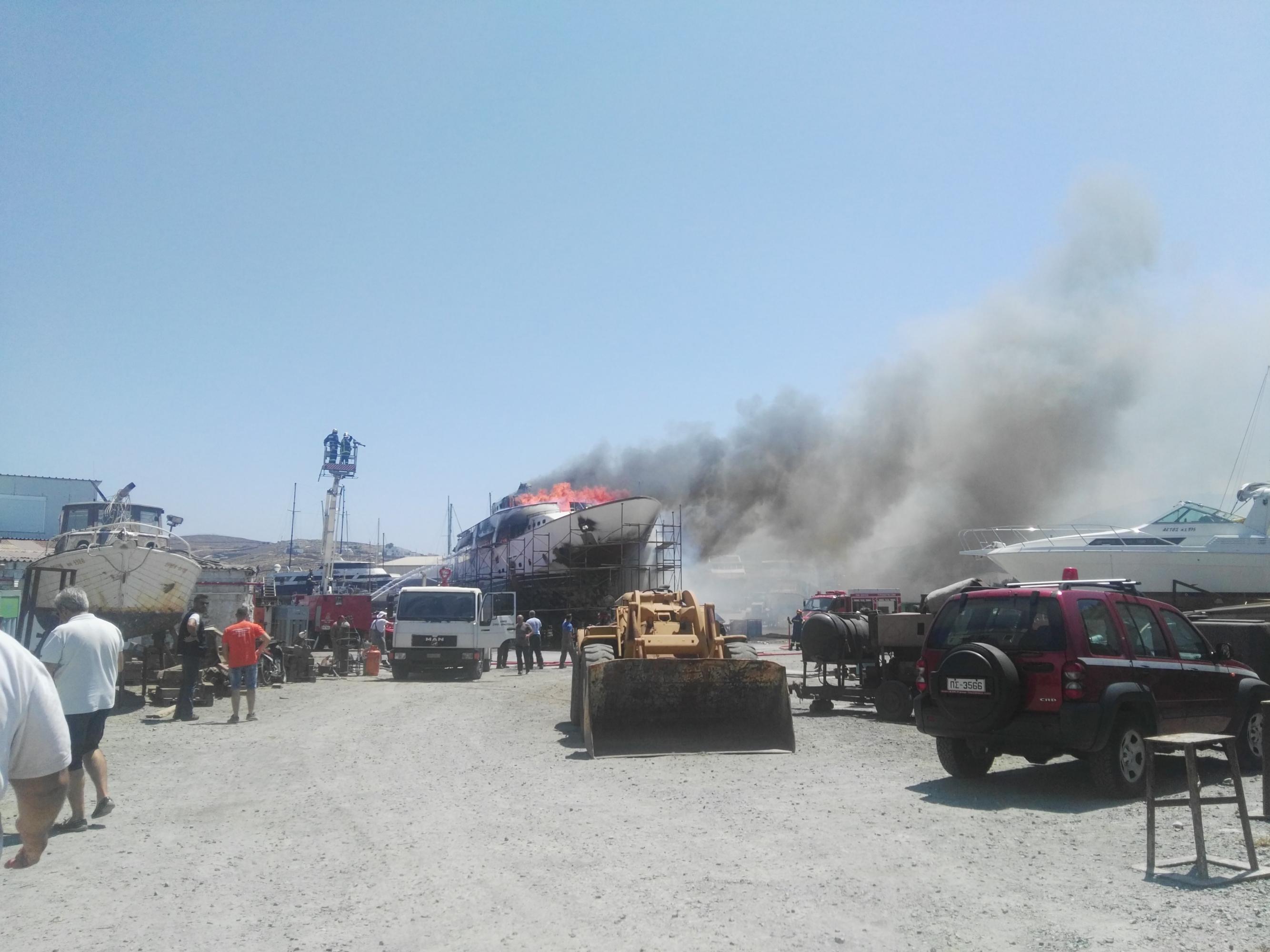 Πυκνός καπνός κάλυψε την περιοχή του Ταρσανά χθες στην Ερμούπολη, καθώς πολυτελές σκάφος τυλίχθηκε στις φλόγες ενώ βρισκόταν προς συντήρηση κι επισκευή σε ιδιωτική επιχείρηση.