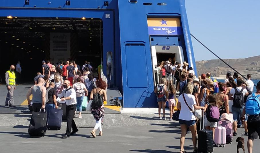 Ξεκίνησε η επιστροφή των επισκεπτών προς την Αθήνα, από τη Σύρο, η οποία εξυπηρετήθηκε με τρία δρομολόγια, σήμερα, Κυριακή 16 Αυγούστου για να καλυφθεί η μετακίνηση περίπου 2.000 ατόμων.
