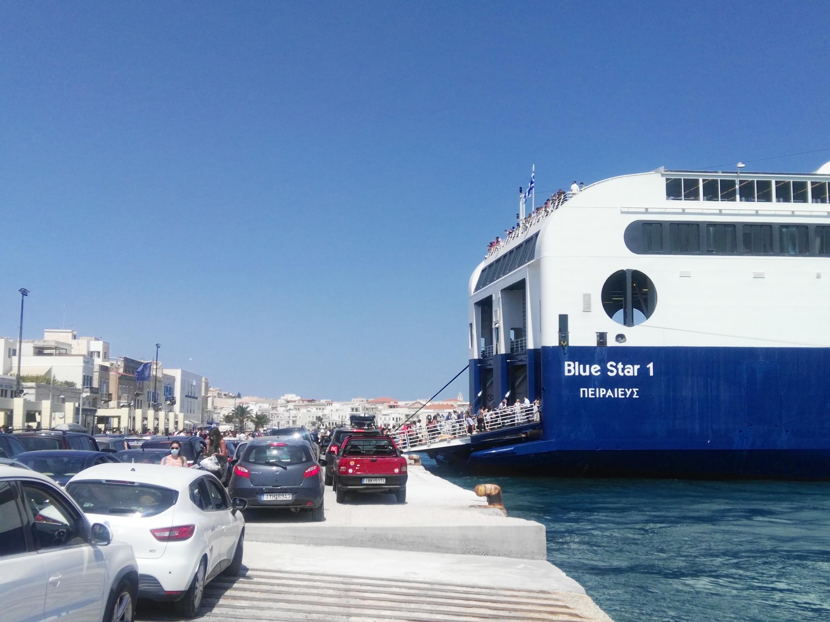 Ειδικότερα, στις 15.15 αναχώρησε το Blue Star 1 για τον Πειραιά, έχοντας φθάσει ένα τέταρτο νωρίτερα στο λιμάνι της Ερμούπολης για να "φορτώσει" τον κόσμο και τα οχήματα, με σκοπό να μην συνυπάρξει η εν λόγω κίνηση με την αντίστοιχη του Blue Star Paros, το οποίο ακολούθησε και αναχωρεί στις 16.00 από τη Σύρο.