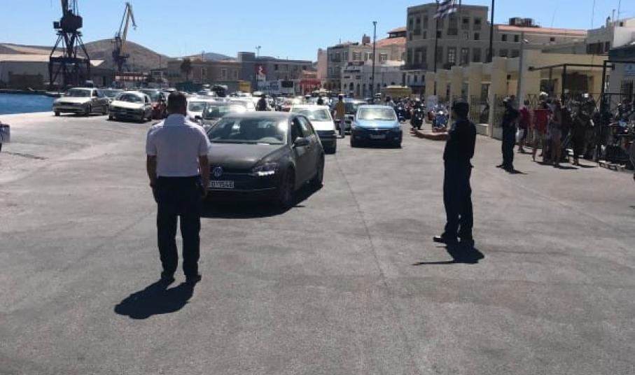Συνεχίζεται η μεγάλη έξοδος των επισκεπτών της Σύρου σήμερα, με το λιμάνι της Ερμούπολης να είναι γεμάτο από οχήματα αλλά και πολίτες οι οποίοι επιστρέφουν στην Αθήνα, μετά από τις διακοπές τους.