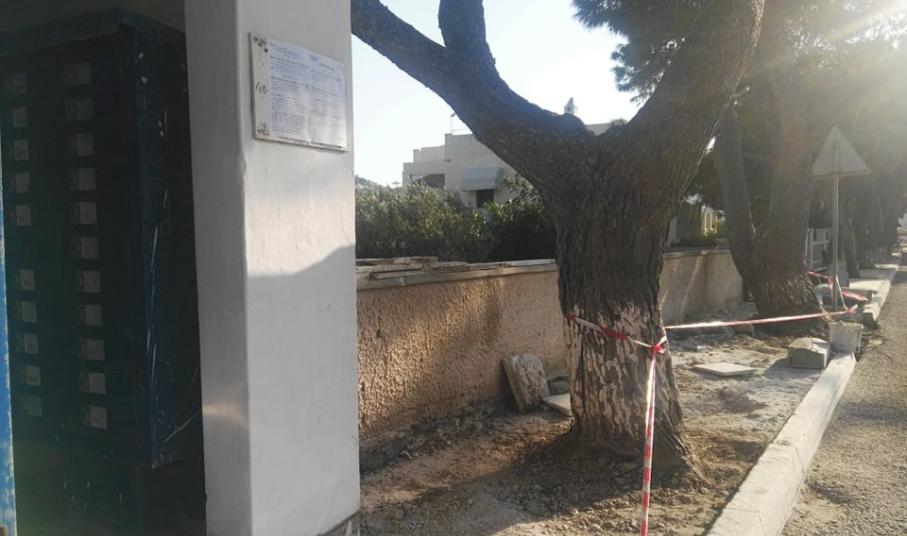 Ειδικότερα, απομακρύνθηκαν τμήματα του πεζοδρομίου περιμετρικά σημείων που υπάρχουν τα μεγάλα δέντρα, καθώς οι ρίζες τους είχαν προκαλέσει μεγάλες φθορές και αποκολλήσεις, με αποτέλεσμα να μην μπορούν να περπατήσουν οι πολίτες με ασφάλεια.