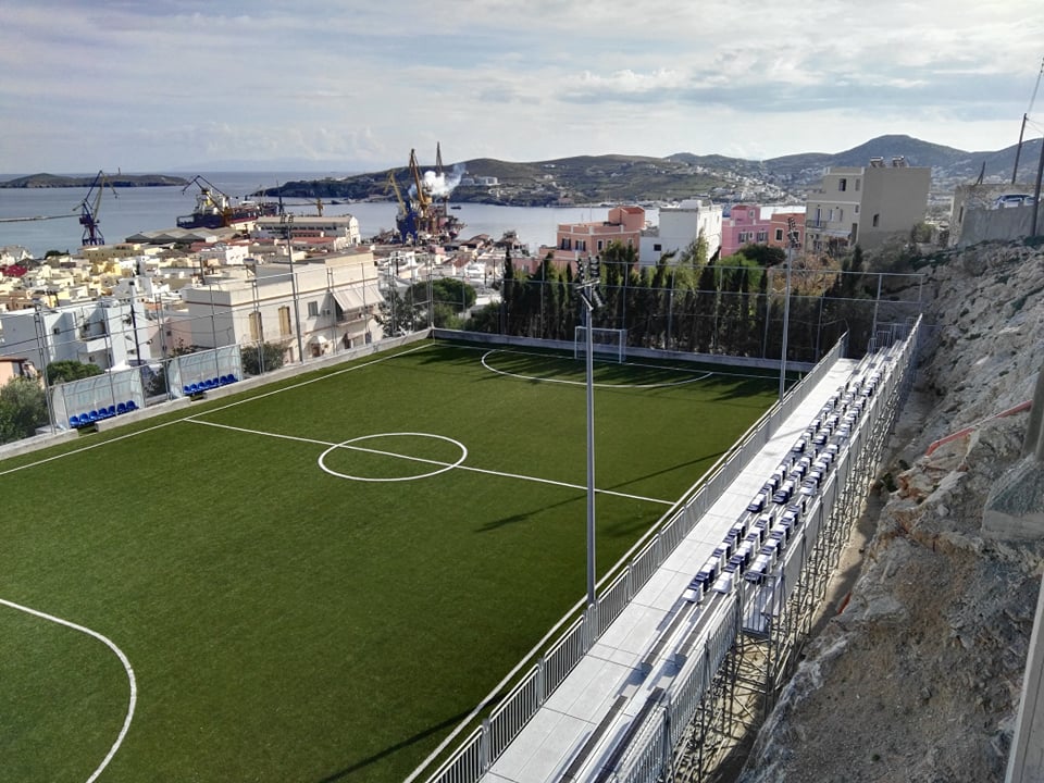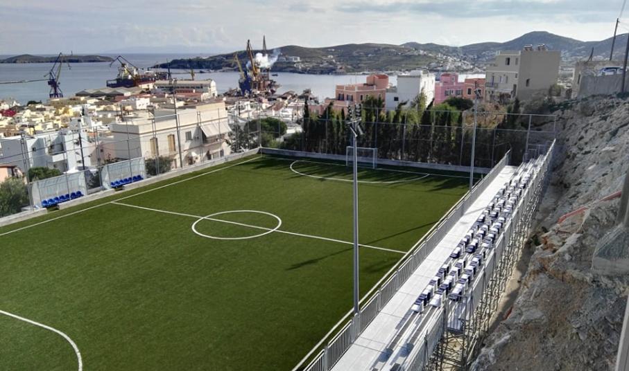 Συγκεκριμένα, καθ΄ όλη τη διάρκεια των τελευταίων ημερών έγιναν οι απαραίτητες εργασίες για τη στήριξη και τοποθέτηση των καθισμάτων στη βάση των κερκίδων του ανανεωμένου και όμορφου γηπέδου, από την πλευρά του Δήμου Σύρου – Ερμούπολης για να ακολουθήσει η οριστική παραλαβή του.