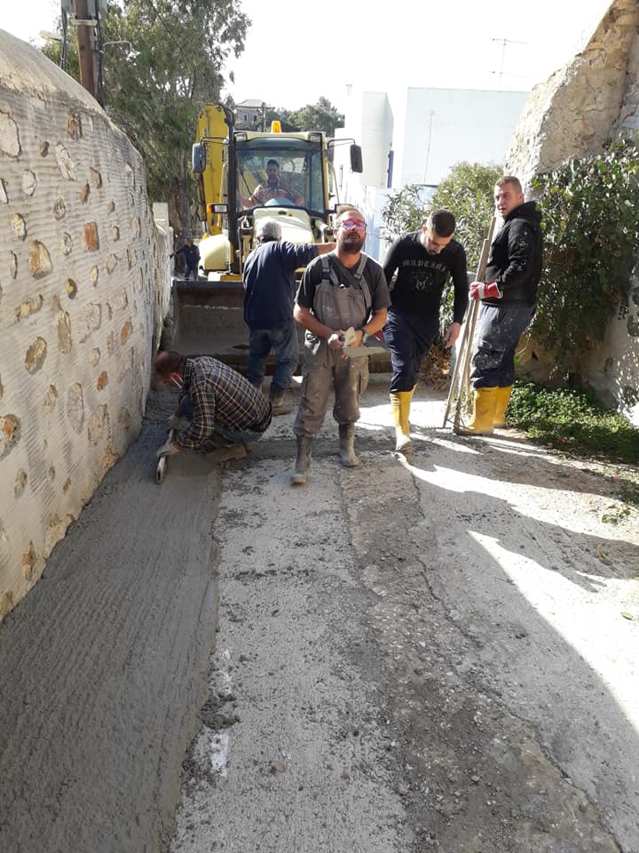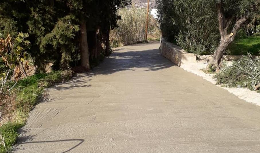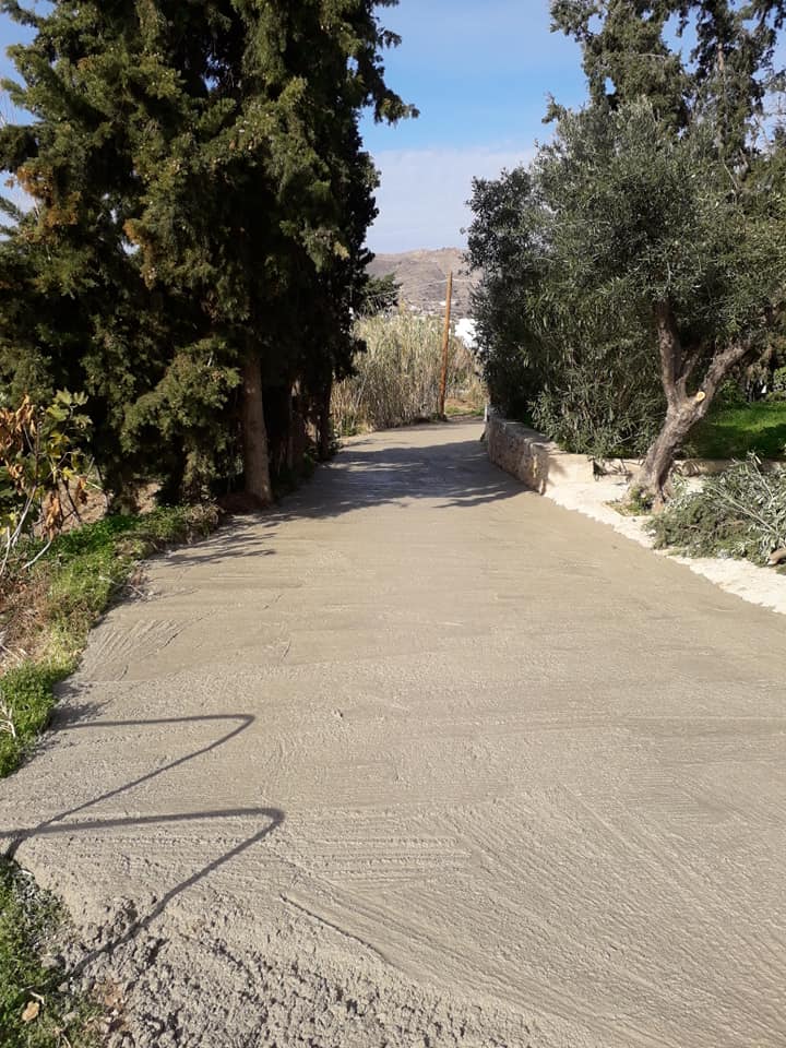Η εικόνα του “σπασμένου” τσιμεντόδρομου και του χωμάτινου τμήματος που με τις βροχοπτώσεις τη χειμερινή περίοδο μετατρέπεται σε “λίμνη” γεμάτη από λάσπη, αποτελεί πλέον παρελθόν, αφού οι εργάτες από το Τμήμα Μικρών Έργων φρόντισαν για την υλοποίηση εργασιών τσιμεντόστρωσης.