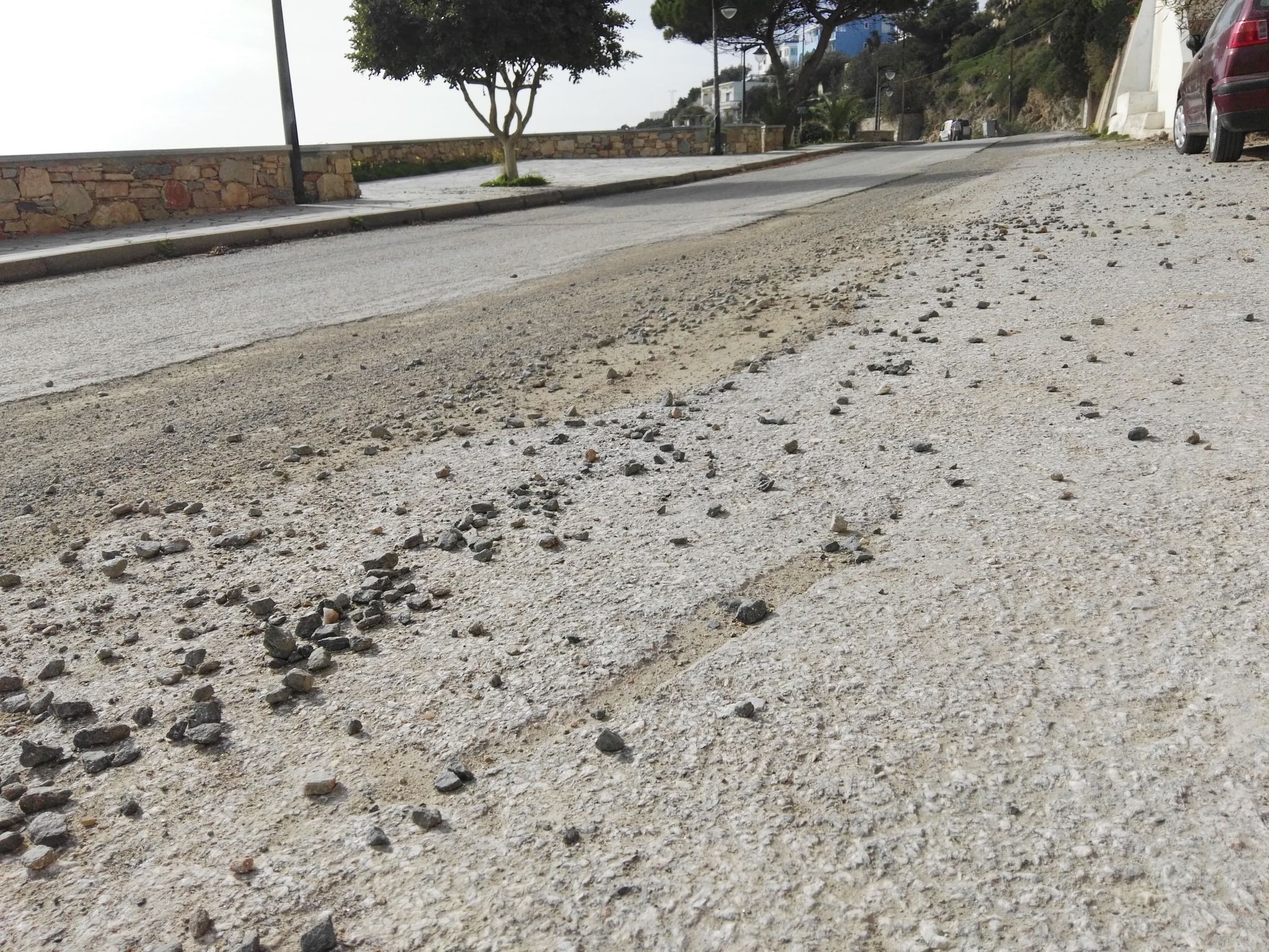 Η ρίψη αμμοχάλικου επιλέχθηκε προς το παρόν, σαν μία ενδιάμεση λύση, μέχρι και τη φάση της ασφαλτόστρωσης, οι εργασίες για την οποία επιβάλλεται να μην καθυστερήσουν για μεγάλο διάστημα.