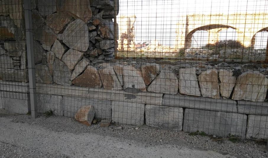 Αποκολλήθηκαν πέτρες από τα παλιά κτίσματα τα οποία έχουν υποστυλωθεί εδώ και τρία χρόνια, με απόφαση του ΟΑΕΔ