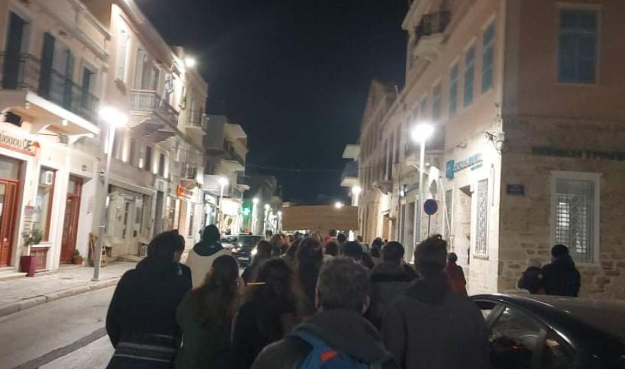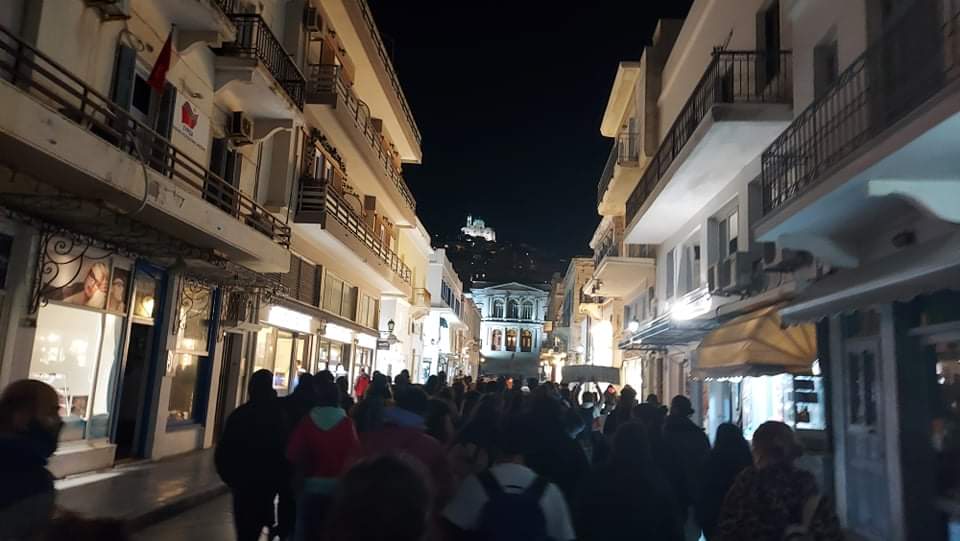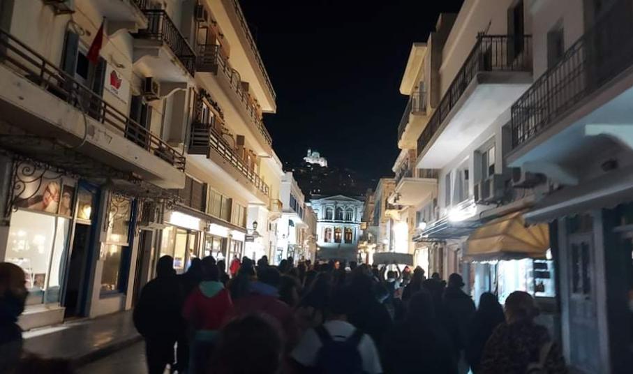 Πορεία διαμαρτυρίας για τα ακραία γεγονότα αστυνομικής βίας και καταστολής που είδαν το φως της δημοσιότητας στην Αθήνα και συγκεκριμένα στην πλατεία Νέας Σμύρνης, πραγματοποιήθηκε με ειρηνικό τρόπο στο νησί της Σύρου, αργά το απόγευμα της Τρίτης.