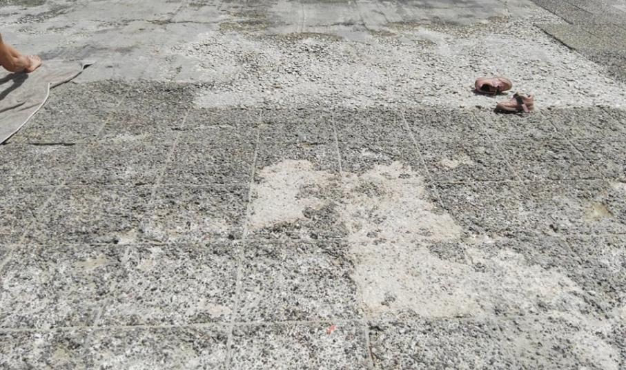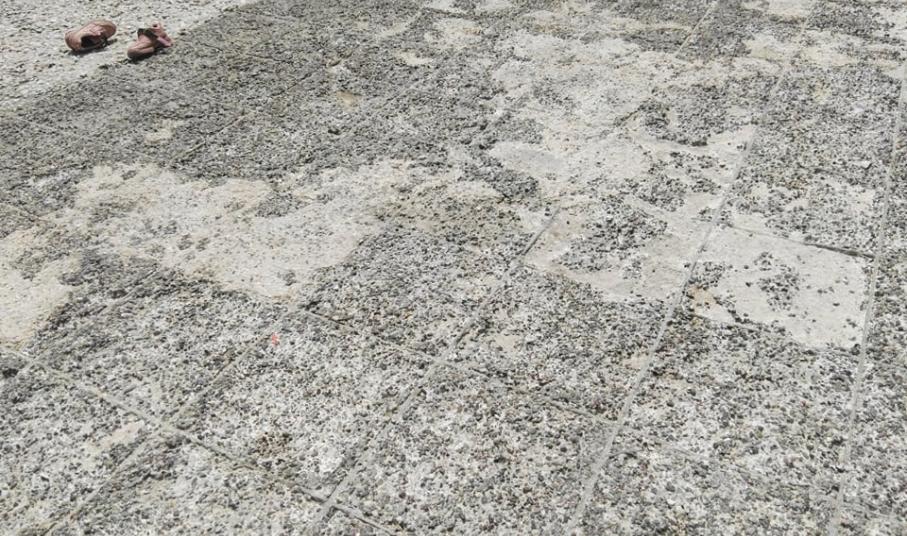 Συγκεκριμένα, η επιφάνεια της πλατφόρμας παρουσιάζει μεγάλες φθορές και αποκολλήσεις τμημάτων της επίστρωσής της με χαλίκι και λεπτό βότσαλο, ενώ σε ορισμένα σημεία, έχουν διαμορφωθεί μικρές λακκούβες, άκρως επικίνδυνες για το βάδισμα των λουομένων. Επιπλέον, απαιτούνται συντηρήσεις στα δημοτικά φωτιστικά σώματα, που έχουν αφεθεί στη μανία της υγρασίας, με αποτέλεσμα να σκουριάσουν, ενώ επισημαίνεται και ο έλεγχος ως προς το κομμάτι της λειτουργίας τους.