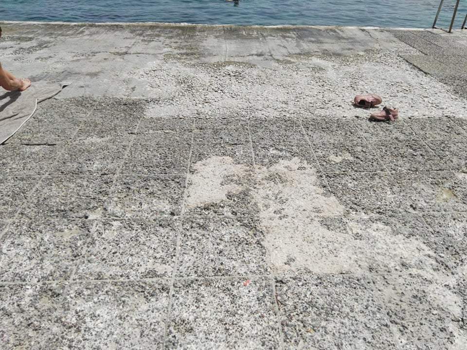 Αν και ήδη αρκετοί λουόμενοι κάνουν χρήση της μεγάλης πλατφόρμας που βρίσκεται πλησίον των κεντρικών σκαλοπατιών της περιοχής, δυστυχώς διαπιστώνουν σημαντικά θέματα που παραμένουν σε εκκρεμότητα.