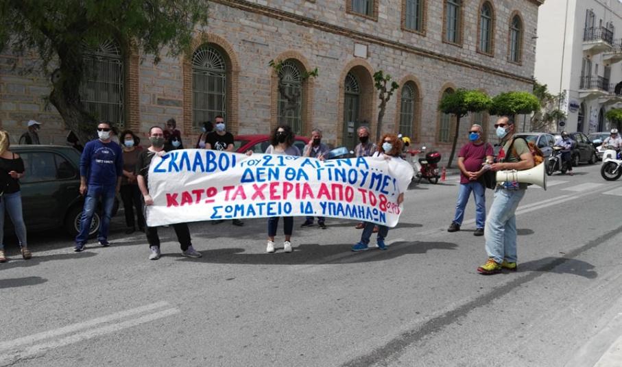 Με συνθήματα ενάντια στην πολιτική που γεννά φτώχεια κι εξαθλίωση στον λαό και θίγει τα δικαιώματά του, συμμετείχαν στην απεργιακή κινητοποίηση για την Εργατική Πρωτομαγιά, εργαζόμενοι της Αποκεντρωμένης Διοίκησης Αιγαίου καθώς και μέλη του Σωματείου Ιδιωτικών Υπαλλήλων Κυκλάδων, χθες το πρωί, οπότε και προχώρησαν παράλληλα σε πορεία διαμαρτυρίας, φθάνοντας στο Γενικό Νοσοκομείο Σύρου.
