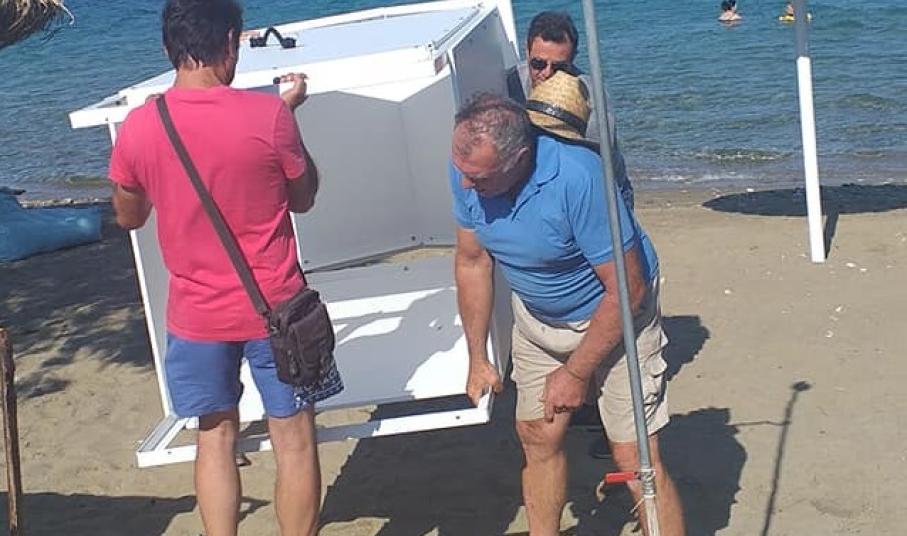 YPERTITLOS: Αντικαταστάθηκε η παλιά και φθαρμένη καμπίνα στην παραλία του Φετουρή από τον Αλιευτικό Σύλλογο της Ποσειδωνίας