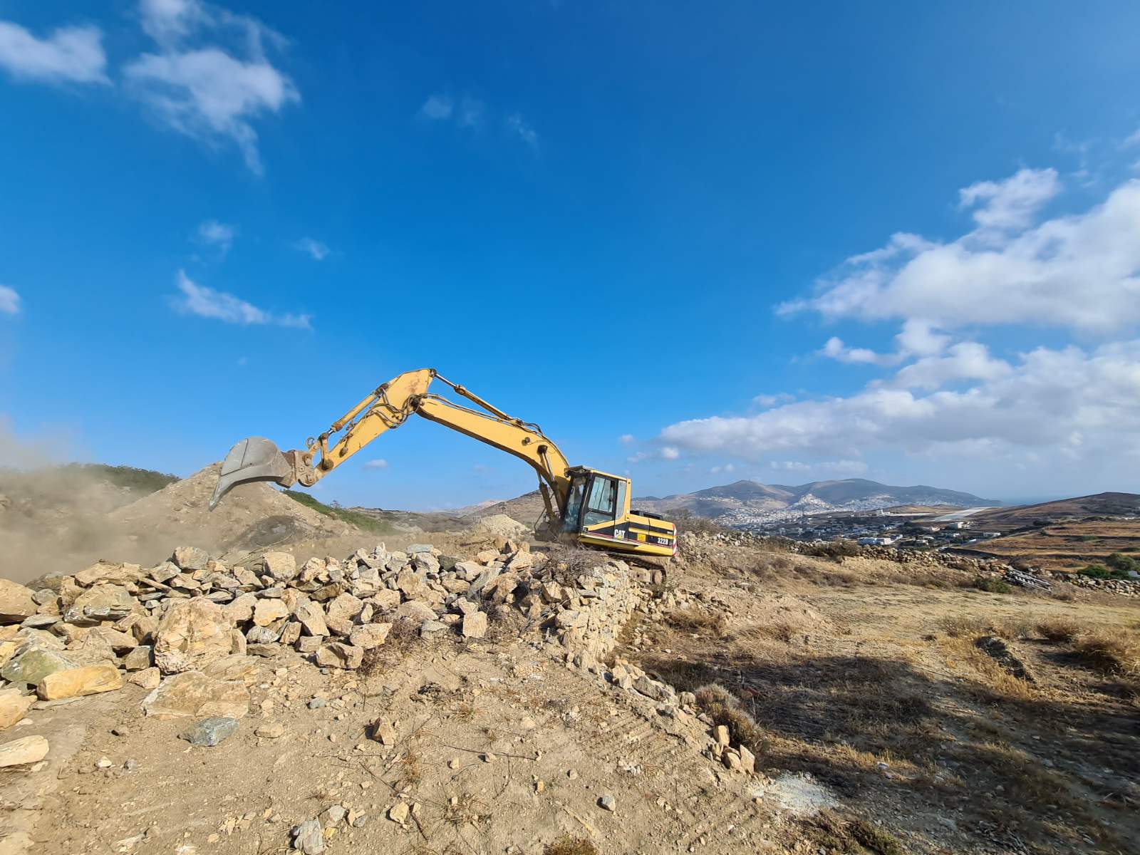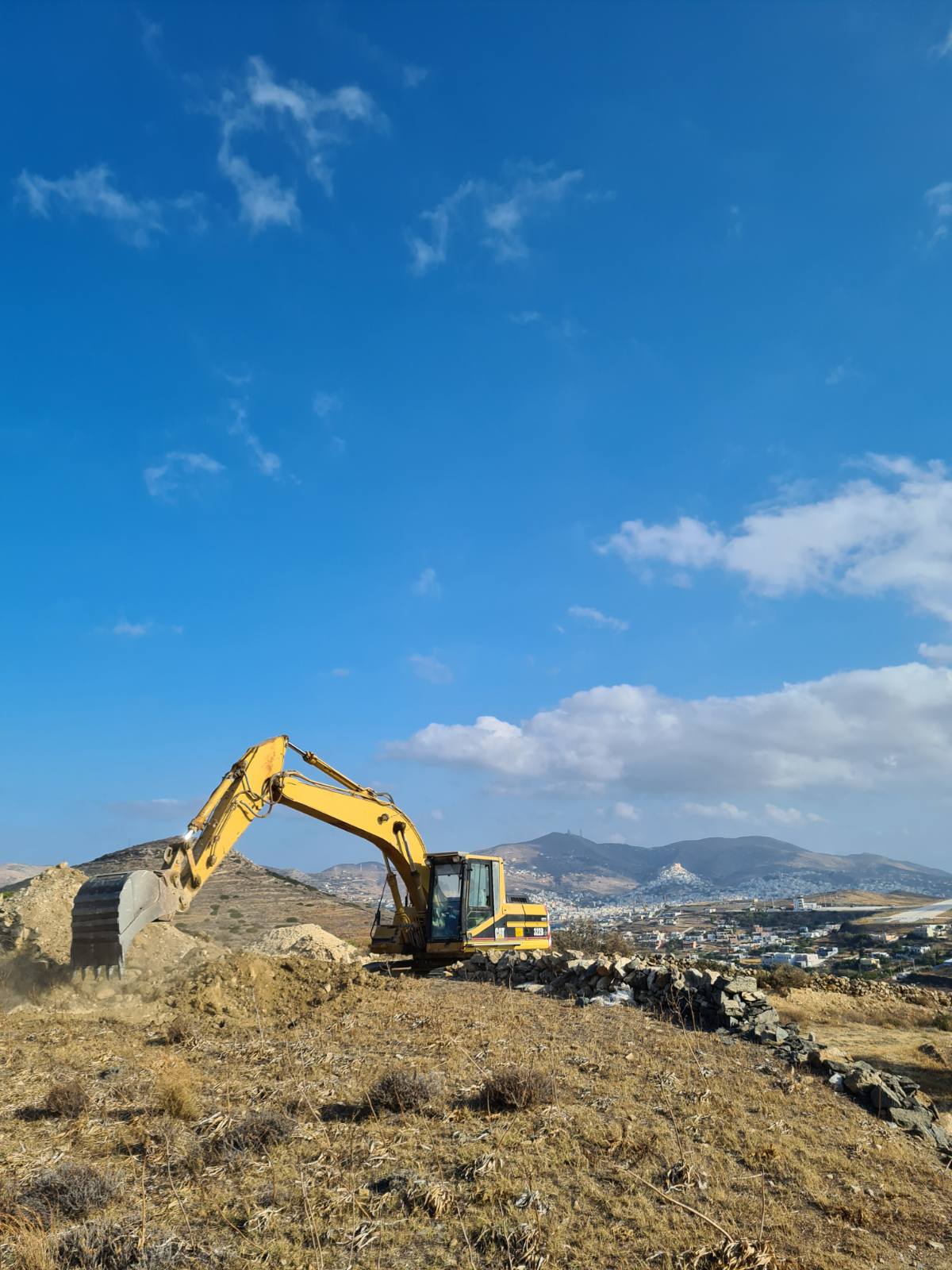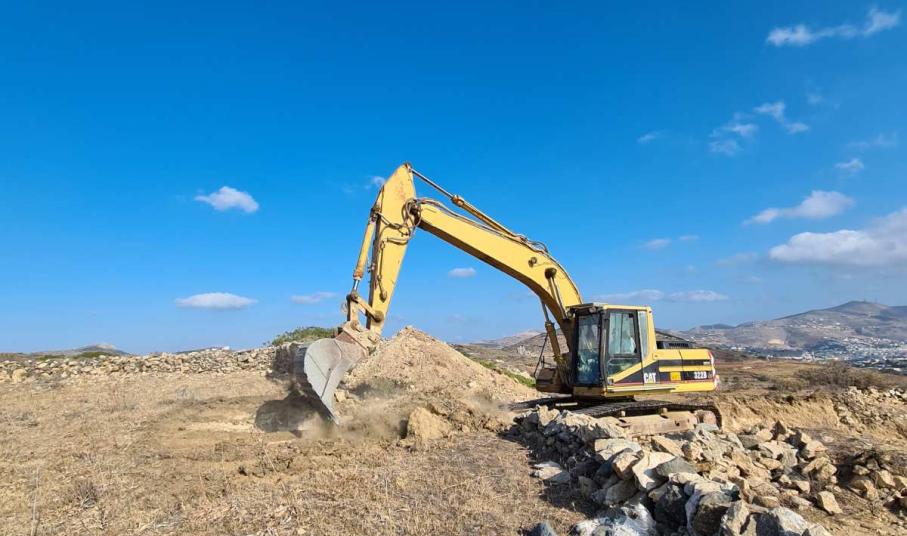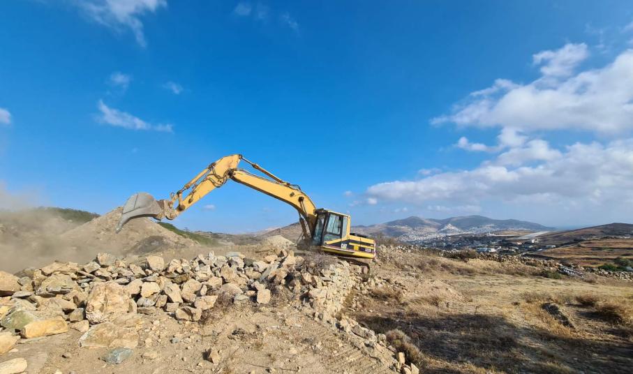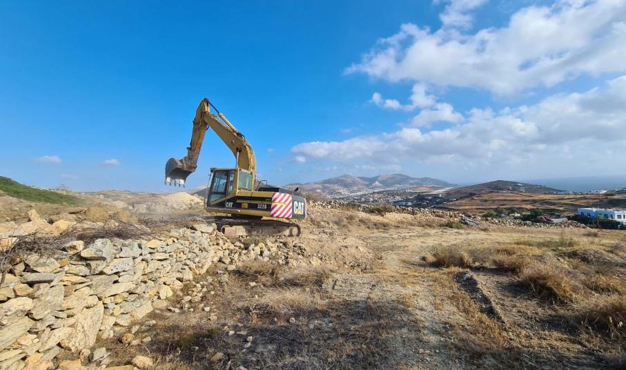 Συστηματικά προχωρά τις εργασίες αποκοπής του λόφου “Νεράιδα” ο ανάδοχος του συγκεκριμένου έργου, o οποίος έχει εγκαταστήσει στην περιοχή επέμβασης τα μηχανήματα έργου προκειμένου να “τρέξει” τη β΄ φάση της υπόθεσης του αεροδρομίου Σύρου.