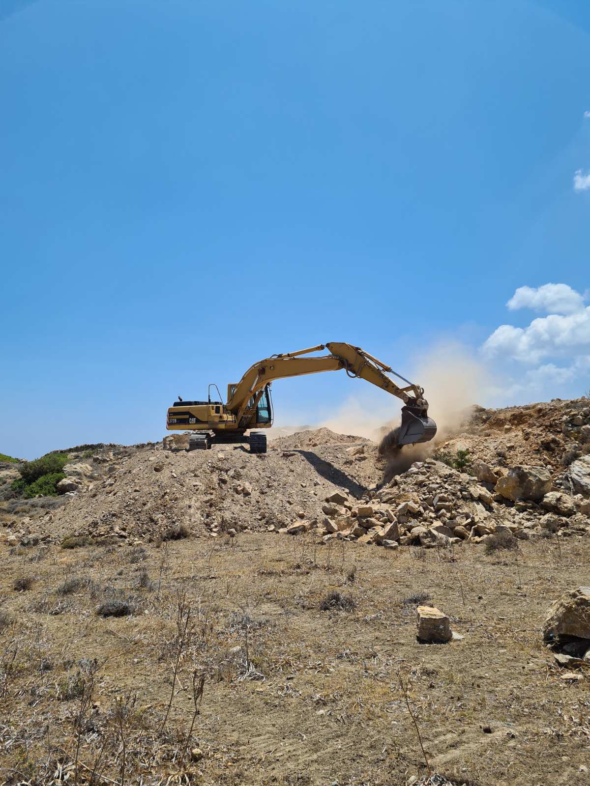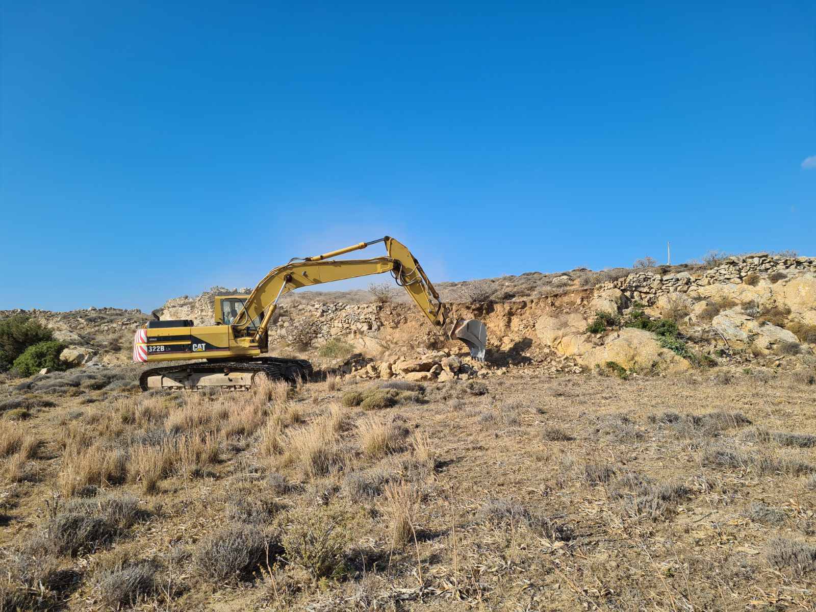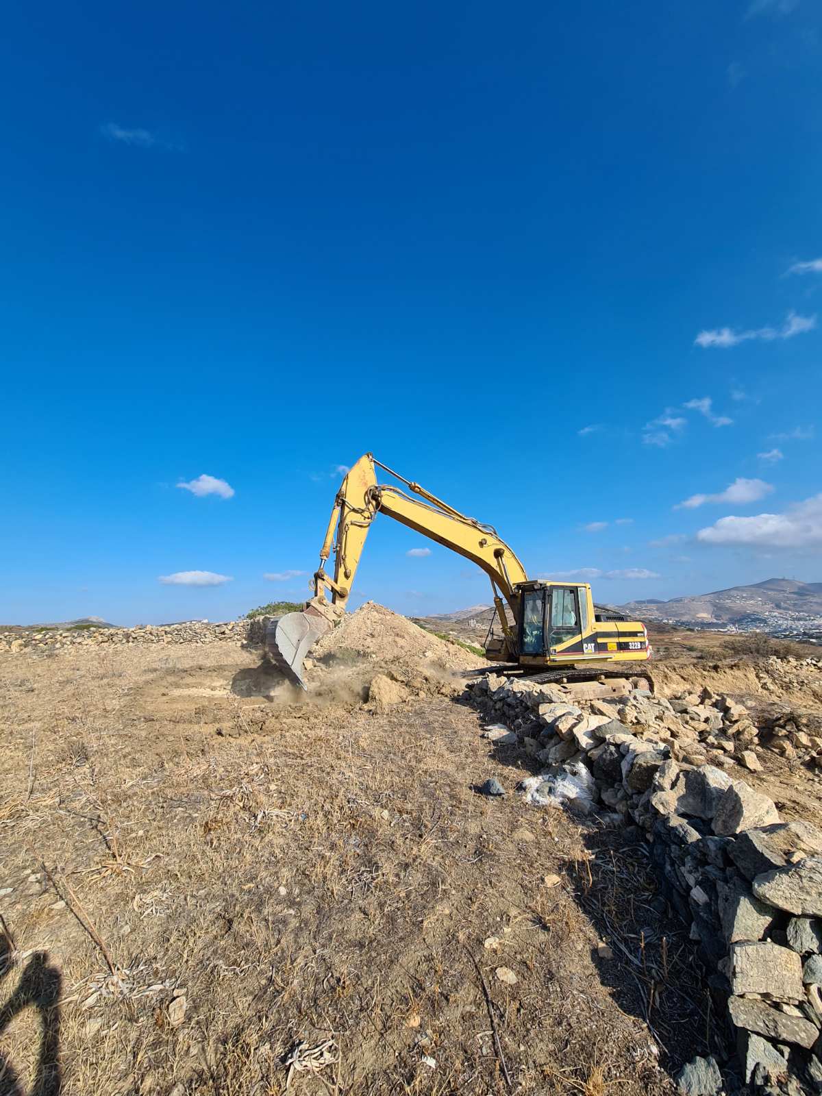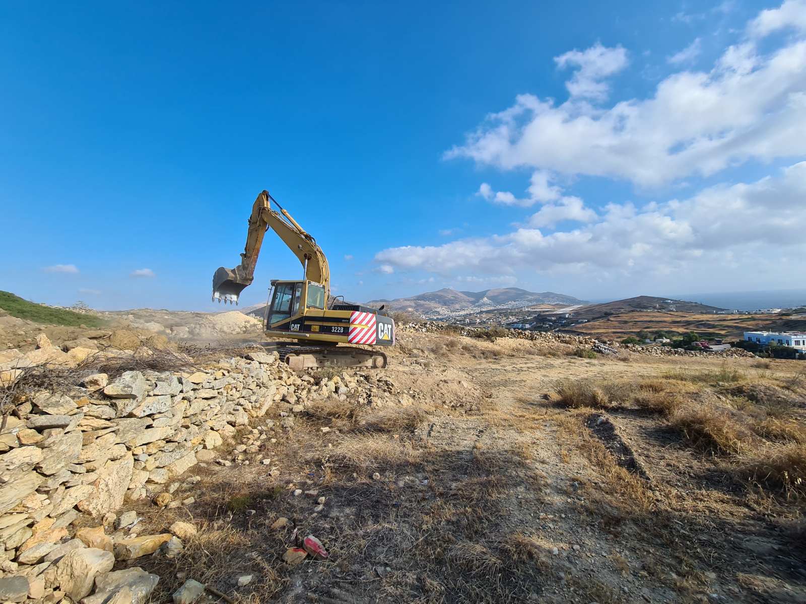 Συστηματικά προχωρά τις εργασίες αποκοπής του λόφου “Νεράιδα” ο ανάδοχος του συγκεκριμένου έργου, o οποίος έχει εγκαταστήσει στην περιοχή επέμβασης τα μηχανήματα έργου προκειμένου να “τρέξει” τη β΄ φάση της υπόθεσης του αεροδρομίου Σύρου.