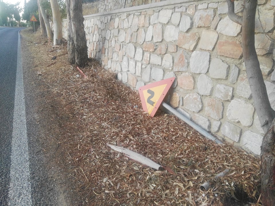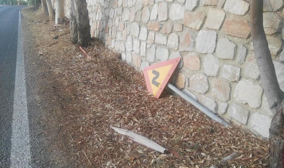 Ειδικότερα, στο σύνολο των περιοχών του νησιού, υπάρχουν πινακίδες κατεστραμμένες, ή πινακίδες που φέρουν στις επιφάνειές τους σπρέι αλλά και κολλημένες αφίσες ή αυτοκόλλητα, ενώ αρκετές εξ αυτών έχουν μετατοπιστεί από τις βάσεις τους.