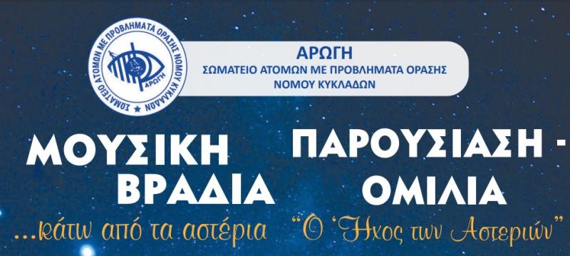 Πρόκειται για μια ιδιαίτερη παρουσίαση – ομιλία, που συνδέει την επιστήμη με την εκπαίδευση, την τέχνη και τη φιλοσοφία και τις αναδεικνύει ως μέσο εκπαίδευσης και επικοινωνίας της Αστρονομίας και της Διαστημικής Φυσικής, σε άτομα με προβλήματα όρασης, παιδιά και ΑμεΑ.