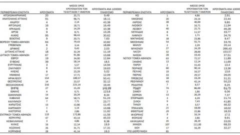 Κατανομή ανακοινωθέντων εγχώριων κρουσμάτων: Από το σύνολο των 2.218 νέων κρουσμάτων του νέου ιού στη χώρα 12 είναι εισαγόμενα εκ των οποίων 7 εντοπίστηκαν κατόπιν ελέγχων στις πύλες εισόδου της χώρας . Η κατανομή των 2.206 νέων εγχώριων κρουσμάτων ανά Περιφερειακή Ενότητα παρουσιάζεται στον κατωτέρω πίνακα.
