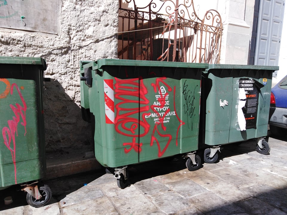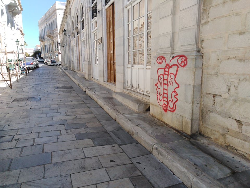 Σε νέο κύκλο επίθεσης ενάντια της καλής εικόνας του ιστορικού κέντρου της Ερμούπολης προχώρησαν ασυνείδητοι, οι οποίοι έβαψαν με σπρέι πολλά σημεία νεοκλασικών κτιρίων, επιφάνειες κάδων ανακύκλωσης, καθώς και πινακίδες του ΚΟΚ.