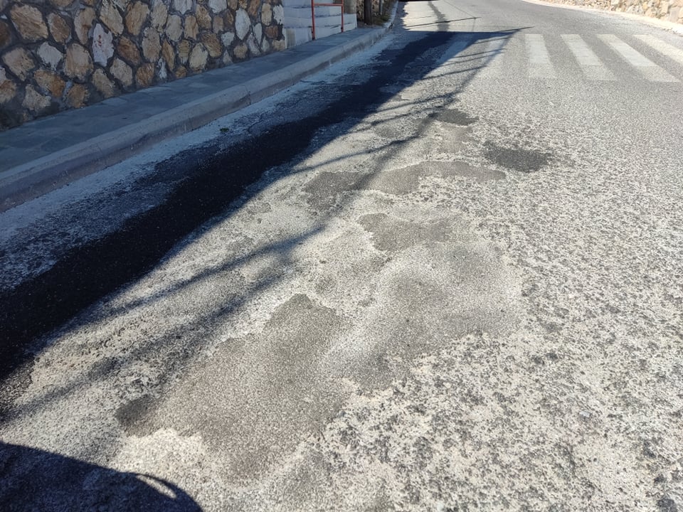 Ειδικότερα, τμήματά της έχουν αποκολληθεί ενώ εκτεταμένο μέρος έχει φθαρεί, με αποτέλεσμα η διέλευση οχημάτων και δικύκλων να καθίσταται επισφαλής, αφού οι οδηγοί – κατά κύριο λόγο – των μηχανών, κινδυνεύουν να χάσουν την ισορροπία τους.