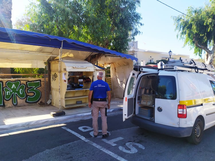 Οι εργασίες απομάκρυνσης του περιπτέρου της Ποσειδωνίας ολοκληρώθηκαν τέλος της περασμένης εβδομάδας, σε συνέχεια της σχετικής απόφασης του Δημοτικού Συμβουλίου του Δήμου Σύρου – Ερμούπολης.