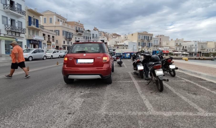 Στην επισήμανση των διαγραμμίσεων που οριοθετούν το σύνολο των θέσεων στάθμευσης δικύκλων στο παραλιακό μέτωπο της Ερμούπολης, οφείλει να προχωρήσει η Δημοτική Αρχή προκειμένου οι οδηγοί να αφήνουν τις μηχανές τους με ασφάλεια και τάξη.