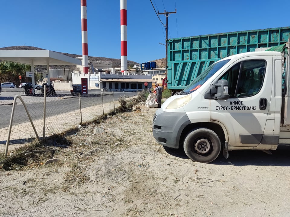 Εργασίες απομάκρυνσης χόρτων και σκουπιδιών από εργάτες του Δήμου Σύρου – Ερμούπολης