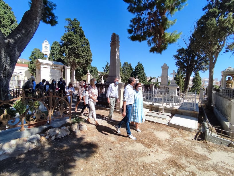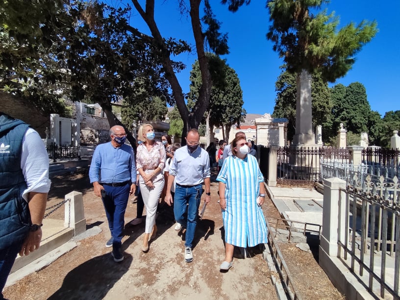 Στα μαυσωλεία στο Κοιμητήριο του Ι.Ν. Αγίου Γεωργίου Ερμούπολης πραγματοποίησε αυτοψία η Υπουργός Πολιτισμού, Λίνα Μενδώνη κατά τη διήμερη παραμονή της στη Σύρο, τέλος της περασμένης εβδομάδας.