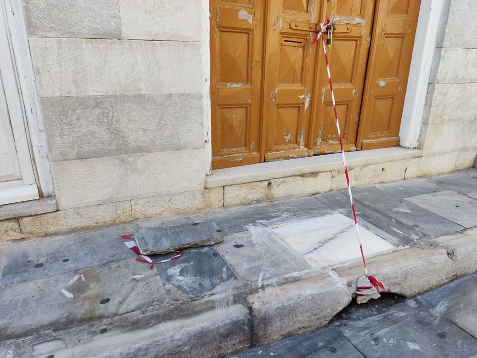 Πρόσφατο παράδειγμα οι σπασμένες πλάκες επί του πεζοδρομίου στην είσοδο της Φιλαρμονικής του Δήμου Σύρου – Ερμούπολης, οι οποίες αποτέλεσαν για ένα 24ωρο “παγίδα” για τους πεζούς στην Ερμούπολη και συγκεκριμένα στον δρόμο που εξυπηρετεί τη Φιλαρμονική, καθώς όμως και για όσους μεταβαίνουν στο Λύκειο Ελληνίδων Σύρου, αλλά και στην Περιφέρεια Ν. Αιγαίου και στη ΔΕΗ.