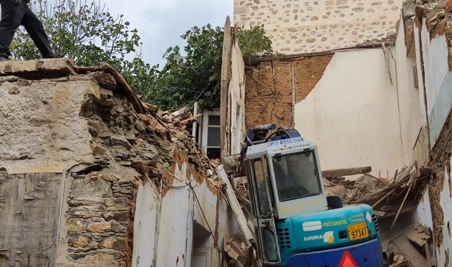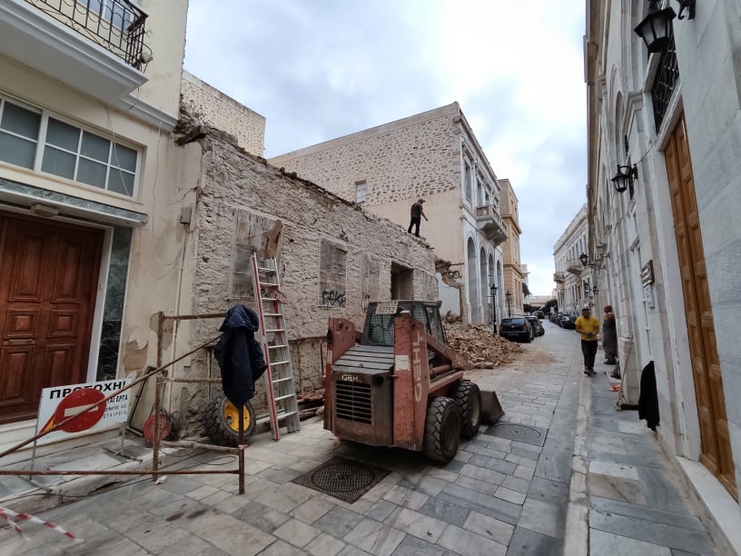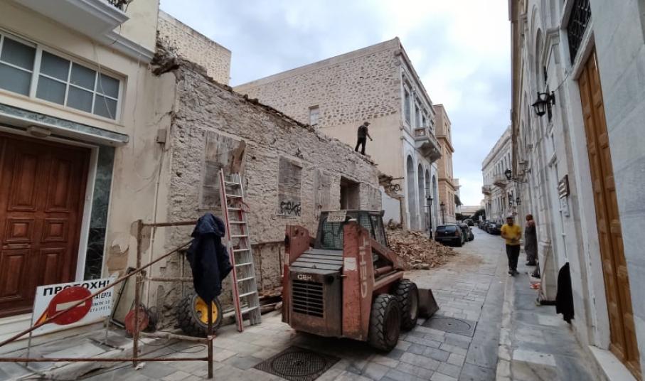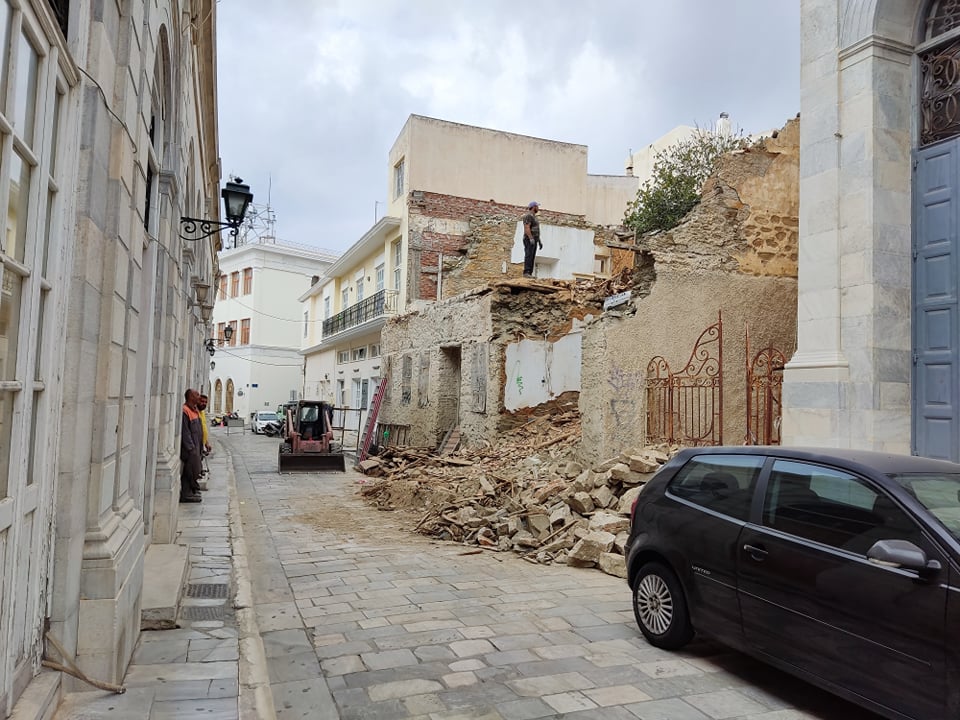 Σε νέες εργασίες ελεγχόμενης κατεδάφισης νέων τμημάτων του δημοτικού ακινήτου πλησίον του Λυκείου Ελληνίδων Σύρου - μεγάλο μέρος του οποίου είχε καταρρεύσει προ μηνών -, προχώρησε χθες ο Δήμος Σύρου – Ερμούπολης, προκειμένου να αποφευχθεί ατύχημα σε δημόσιο χώρο.