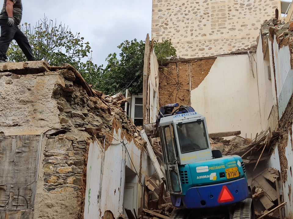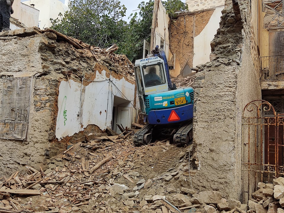 Ειδικότερα, οι συγκεκριμένες εργασίες πραγματοποιήθηκαν με τήρηση όλων των απαιτούμενων μέτρων, με τον δρόμο να παραμένει αποκλεισμένος για λίγες ώρες, ώστε να μην υπάρχει διέλευση άλλων οχημάτων και δικύκλων, καθώς χρησιμοποιήθηκαν μηχανήματα έργου για τις κατεδαφίσεις.